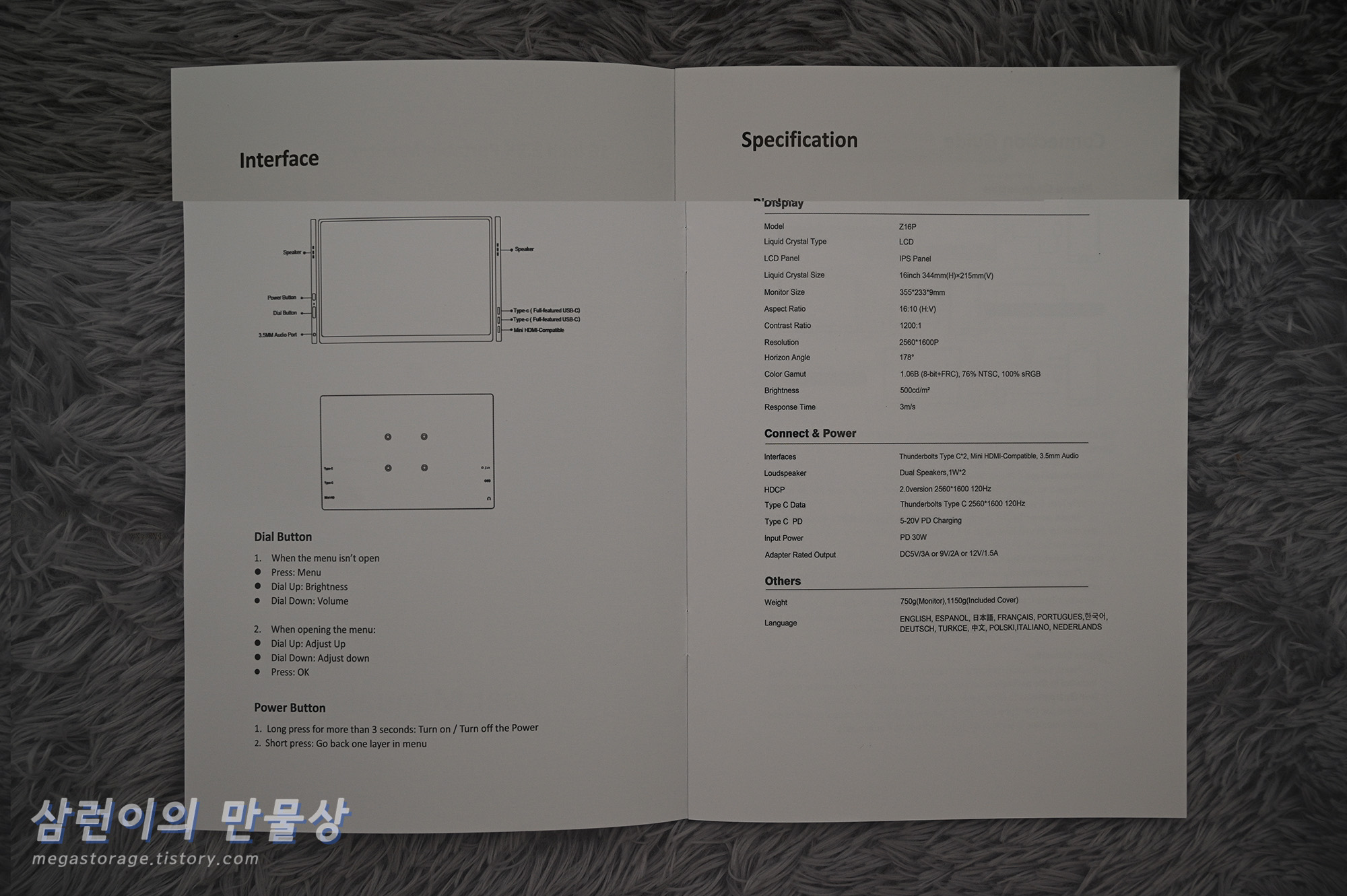 - 기타 : 10bit, HDR, 1200:1, 스피커(모노) 내장, mini HDMI, USB-C 전원, USB-C 모니터 연결