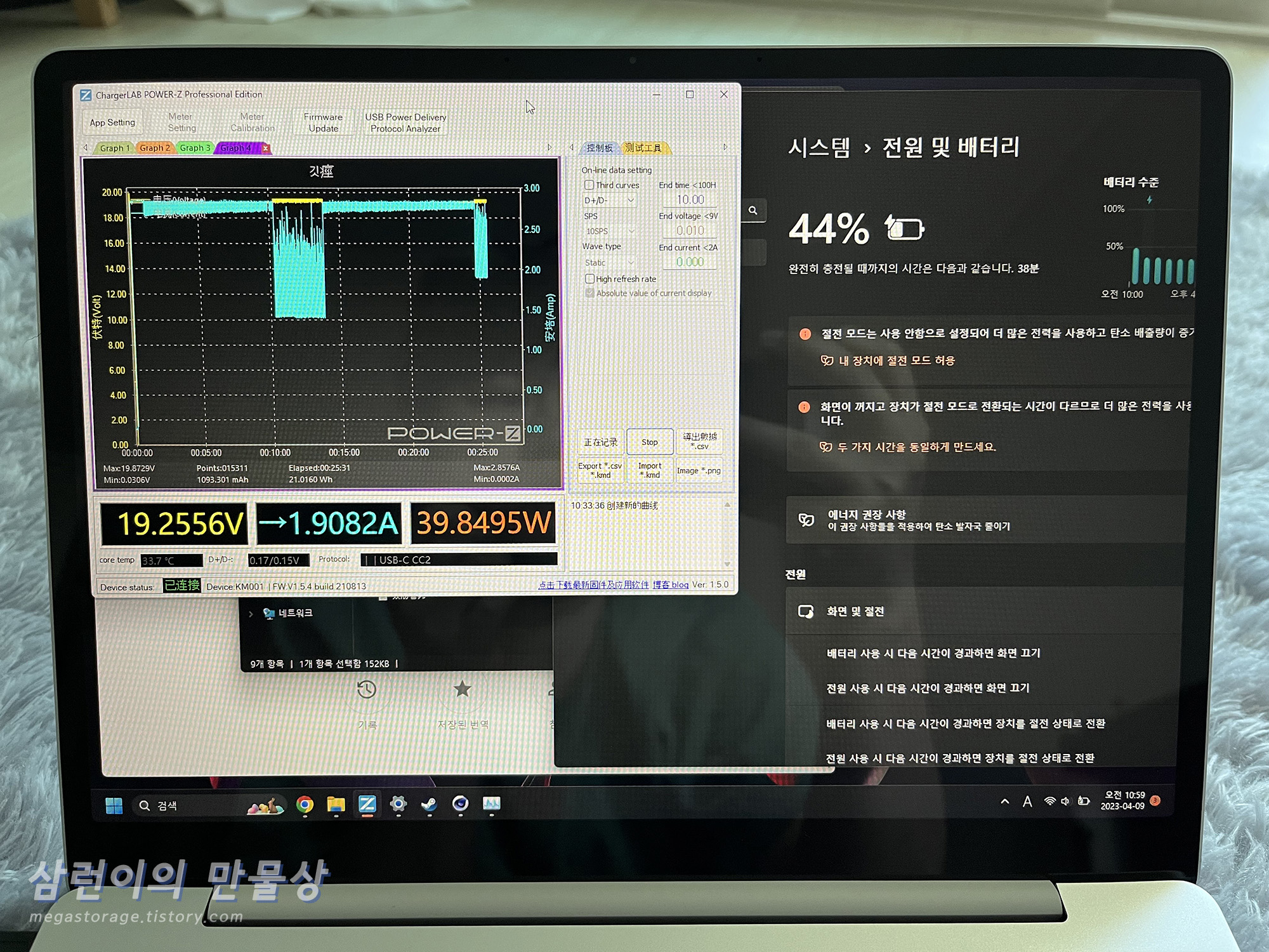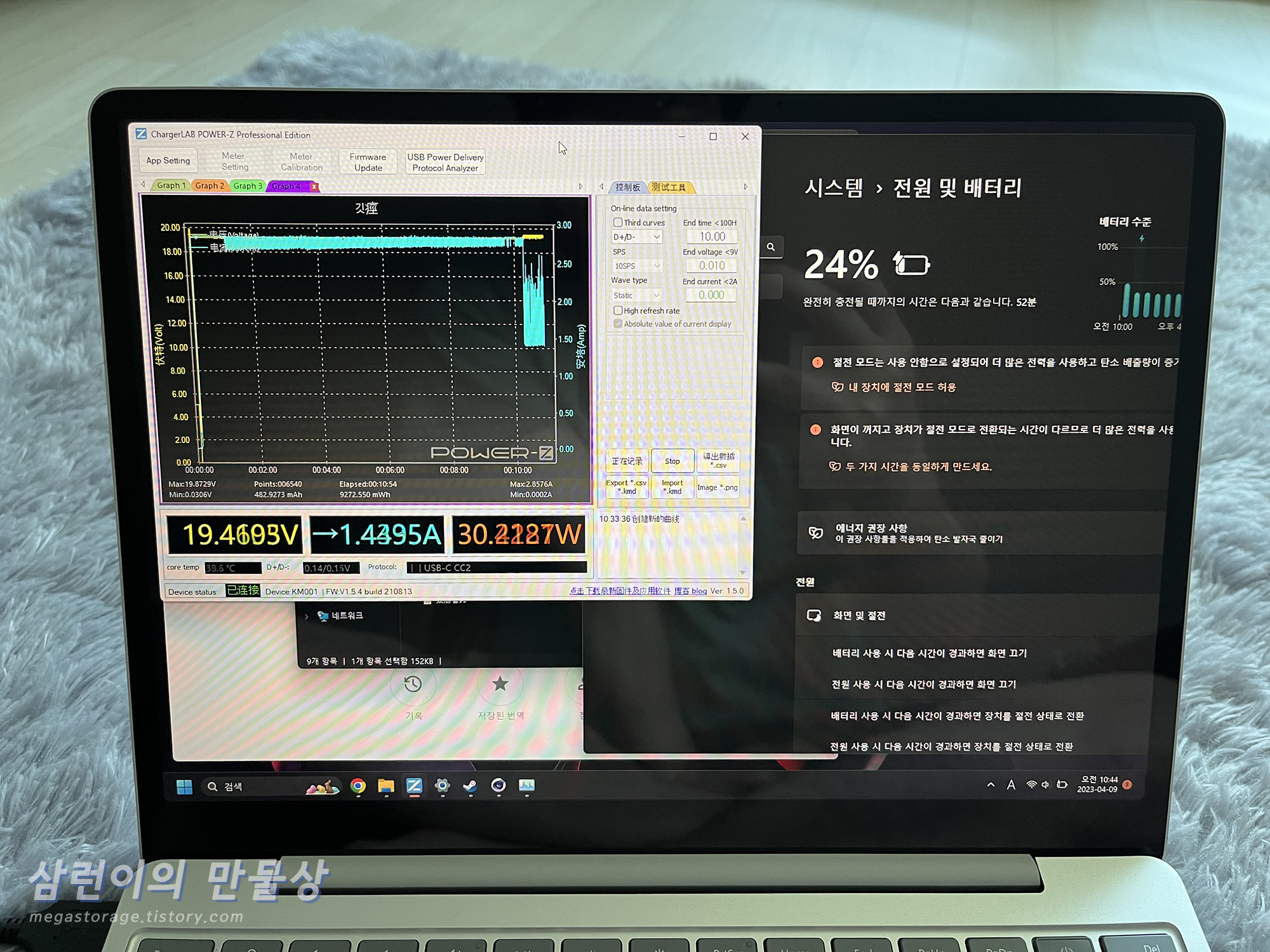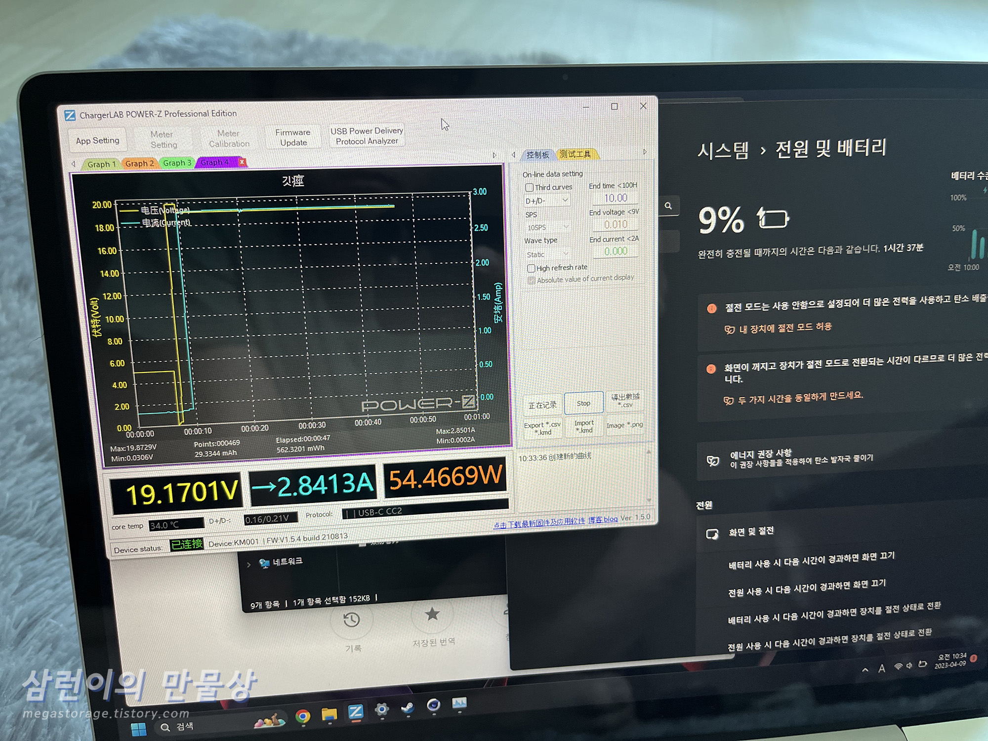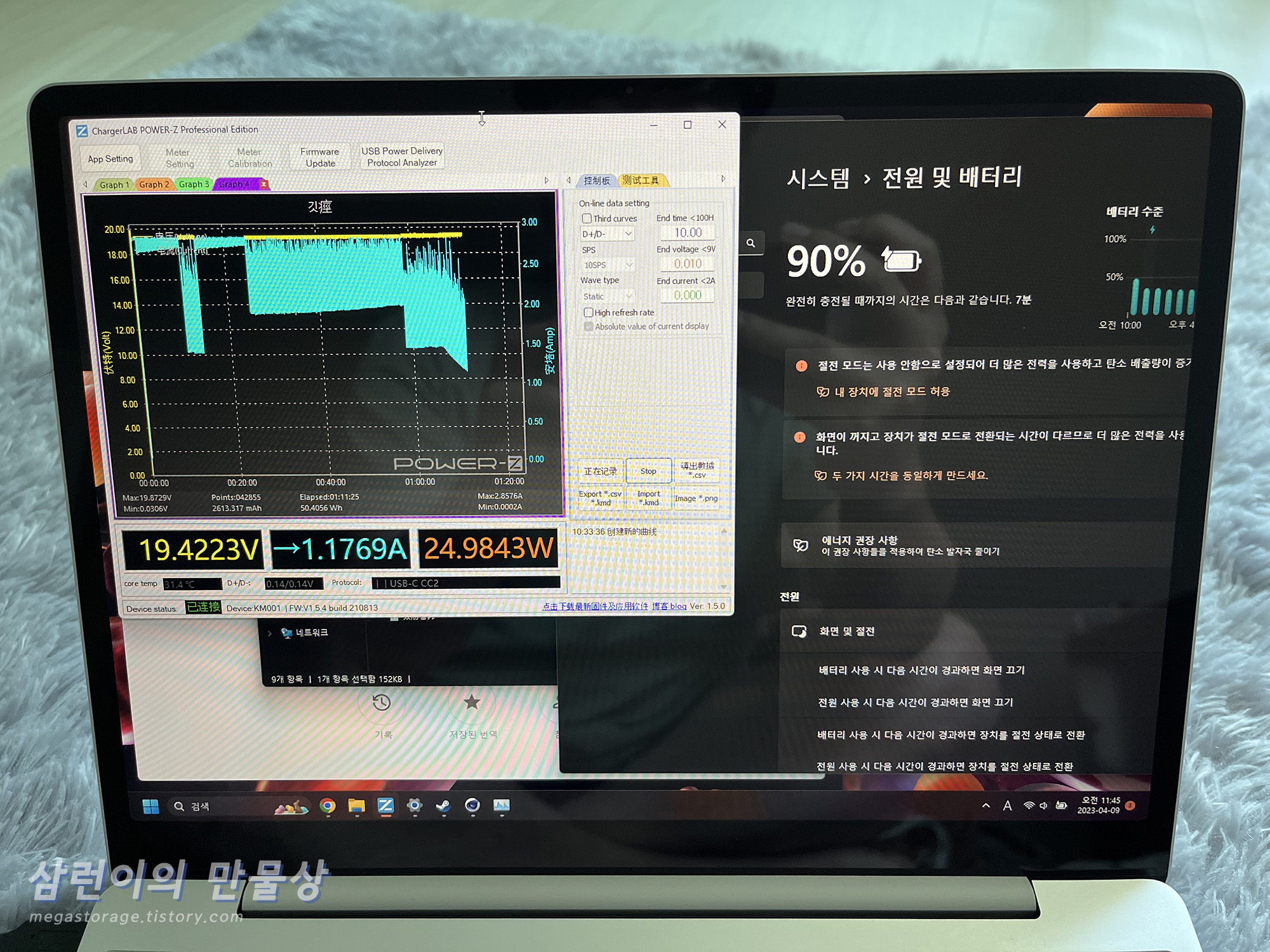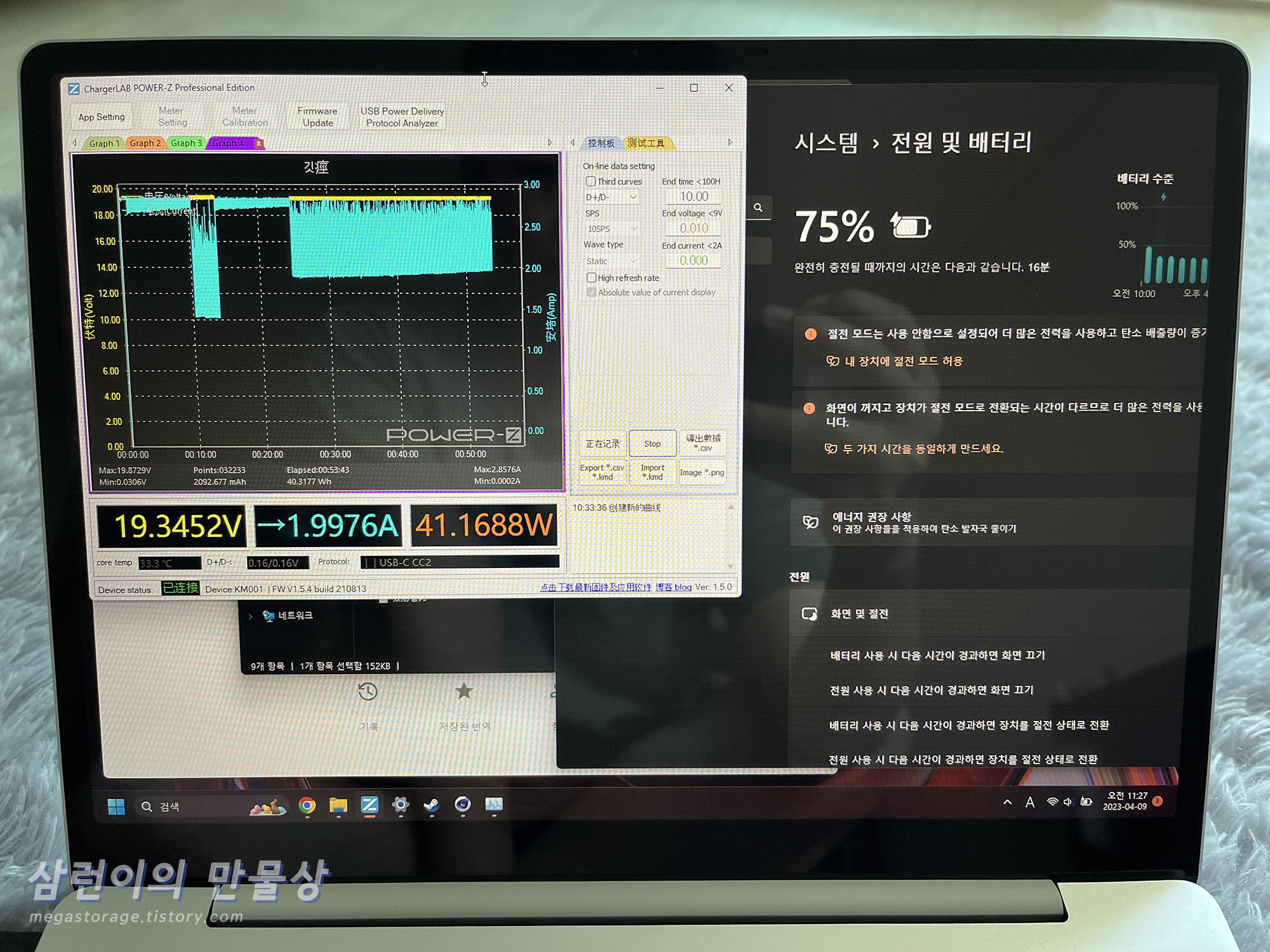- 충전 전류 측정기는 Power-Z KM001 사용