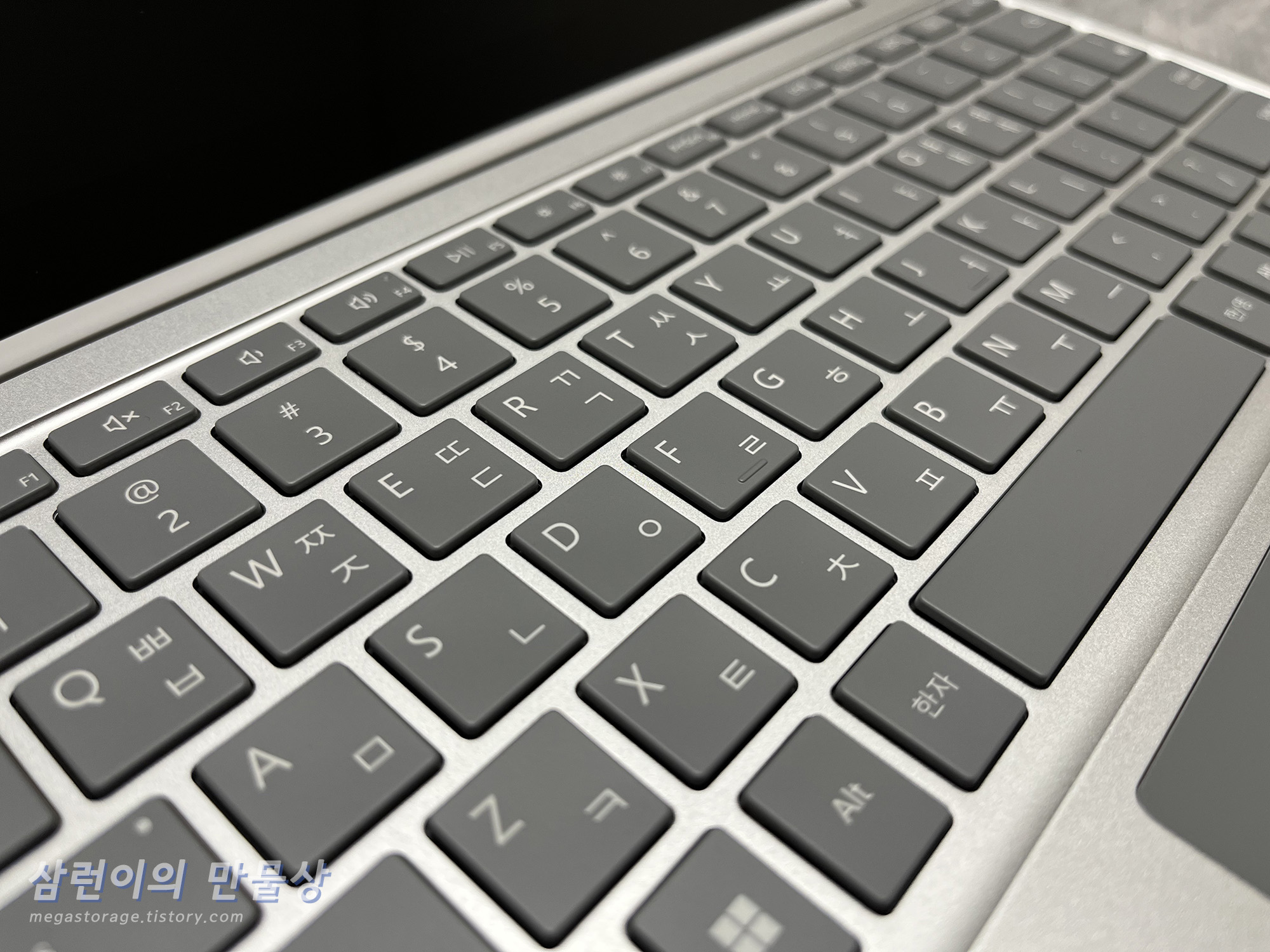 키보드와 터치패드 입니다. 키보드의 키 크기와 간격은 일반적인 노트북 및 키보드의 사이즈와 비슷합니다.
