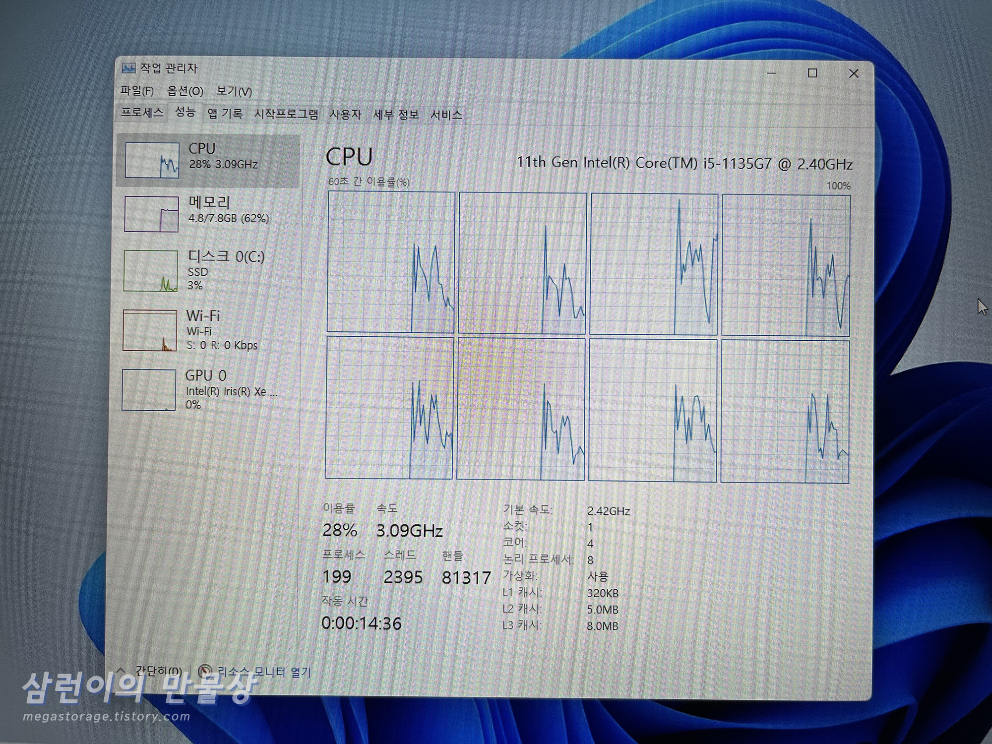 - CPU : 인텔 i5-1135g7