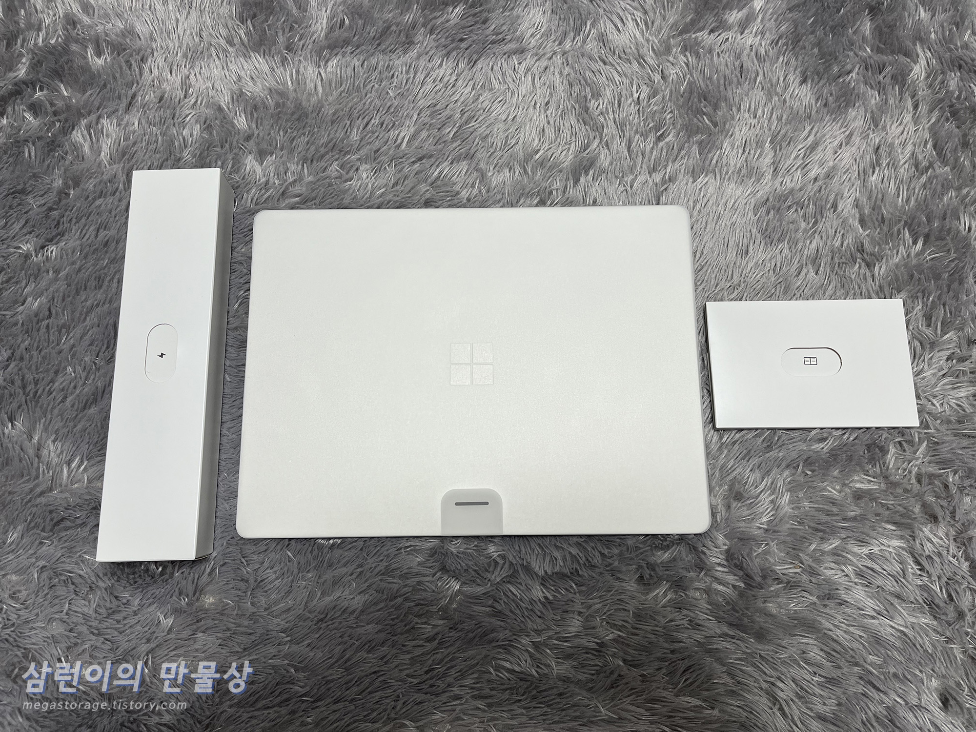 전체 구성품입니다. 좌측부터 충전기, 서피스 랩탑 고 2 및 매뉴얼입니다.