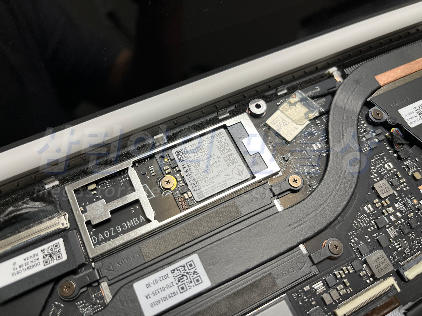 기존 SSD를 때어낸 후 256GB SSD를 장착합니다. 삼성전자 PM991 256GB 입니다. 준수한 성능을 가지고 있습니다.