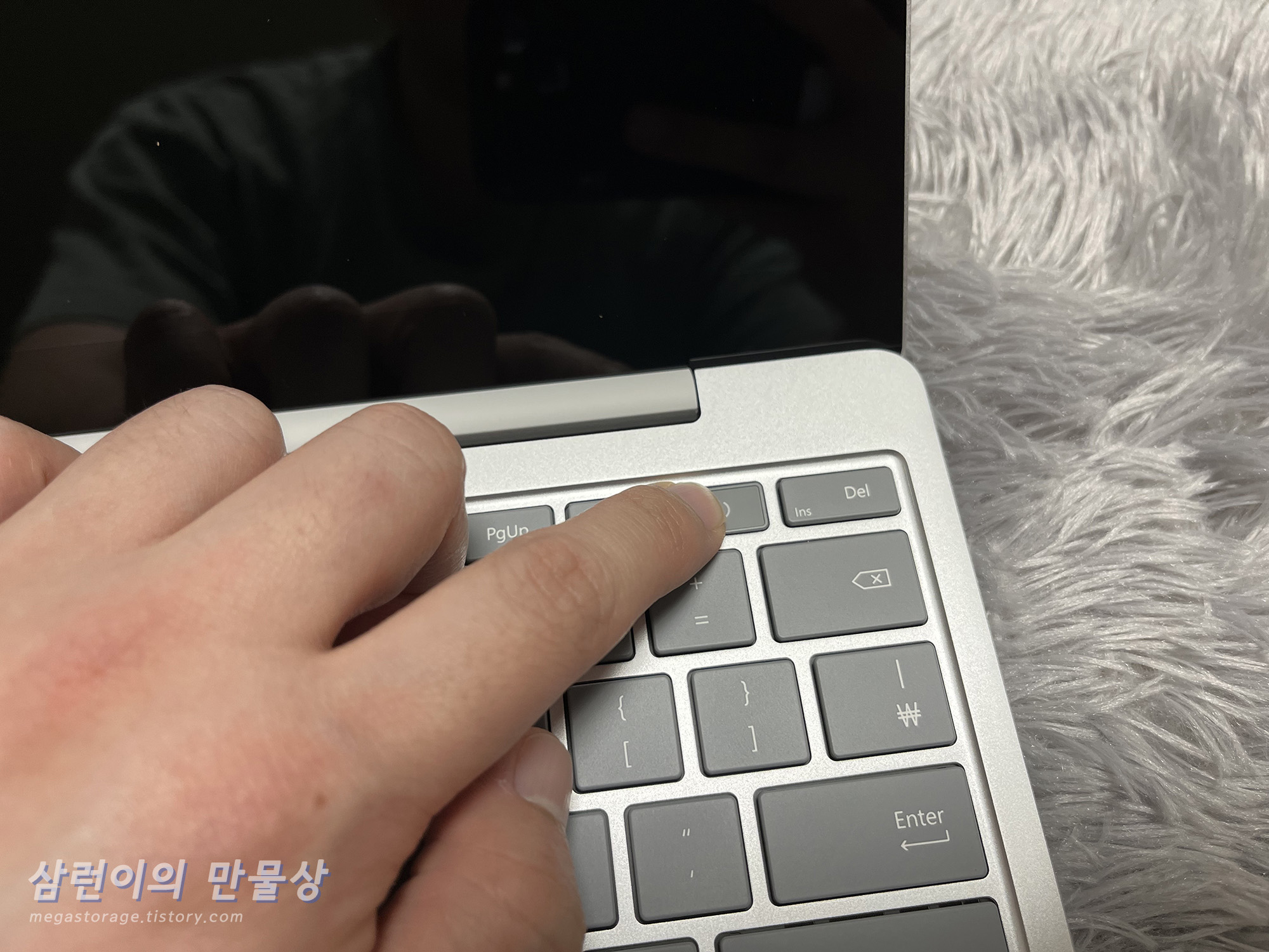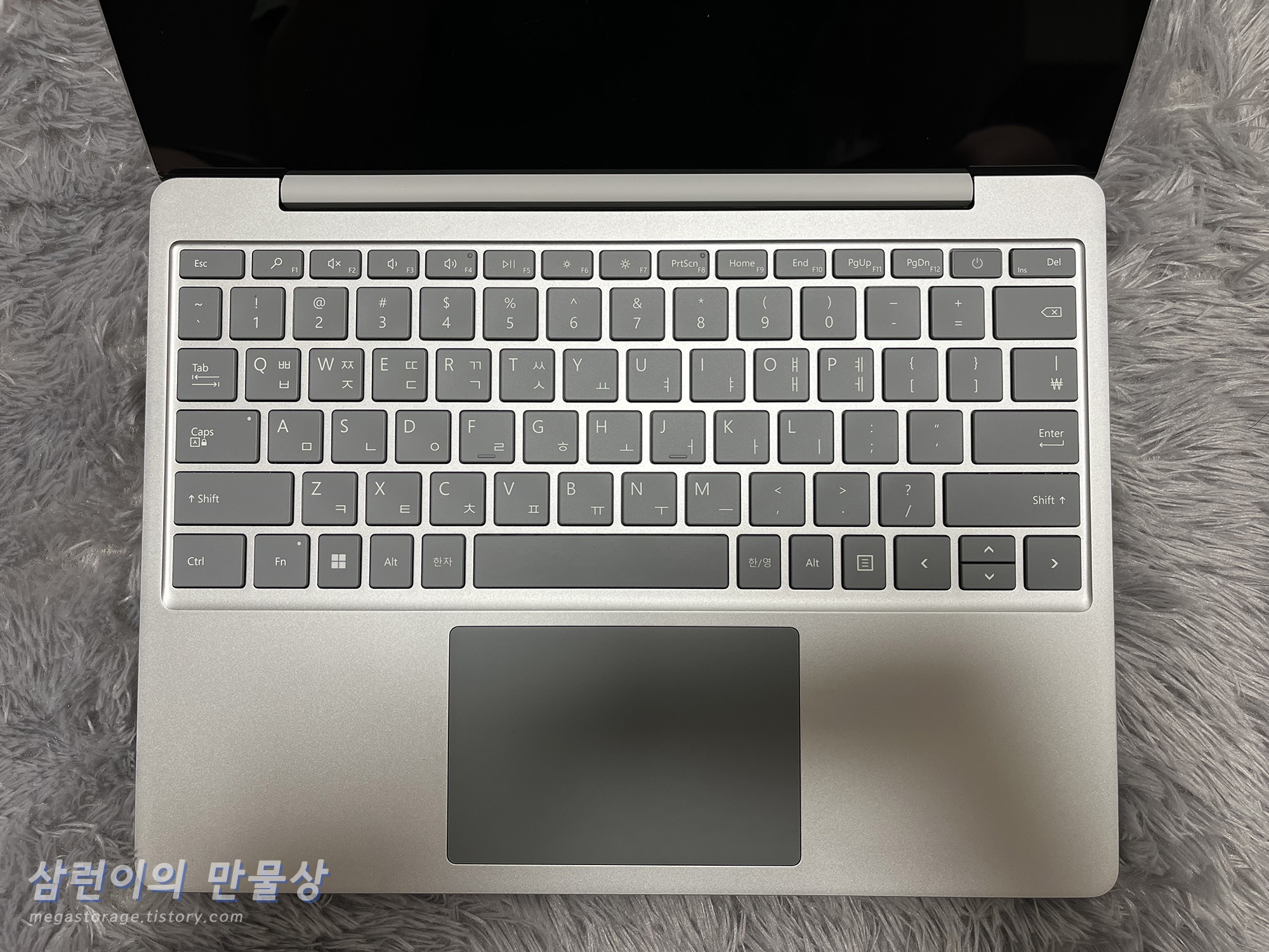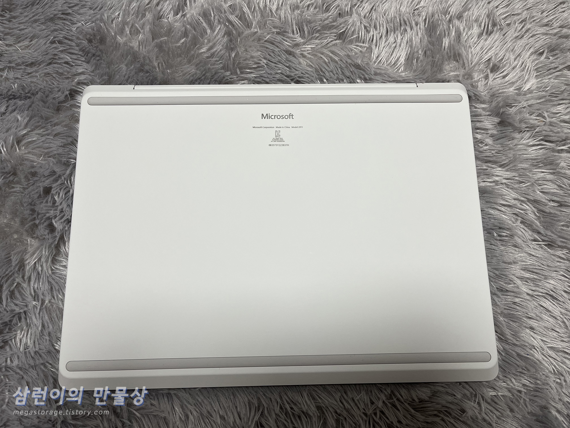 서피스 랩탑 고 2의 하판입니다. 하판은 부드러운 재질로 되어 있습니다. (알루미늄 아님)