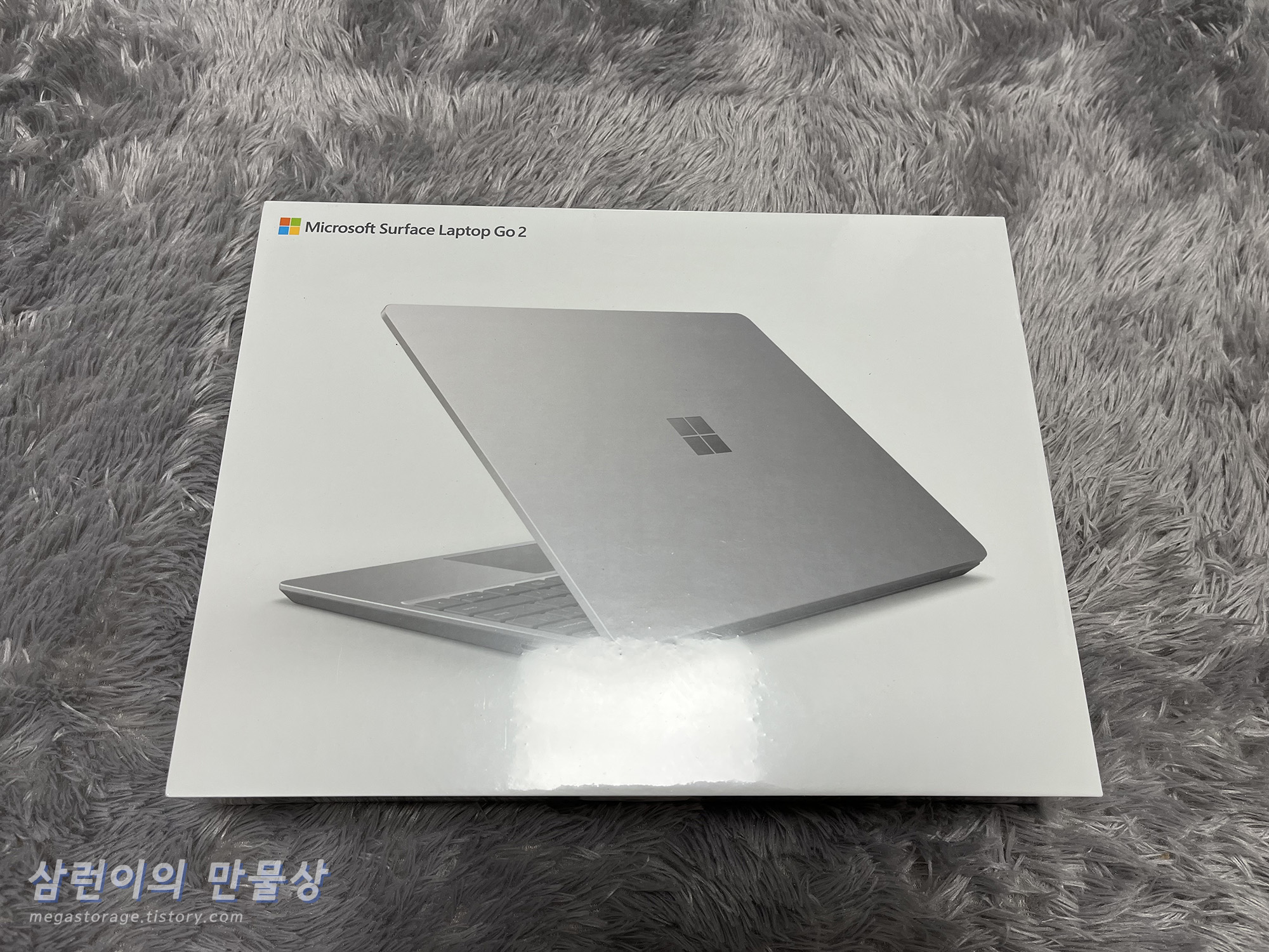 아름다운 서피스 랩탑 고 2의 박스가 보입니다.
