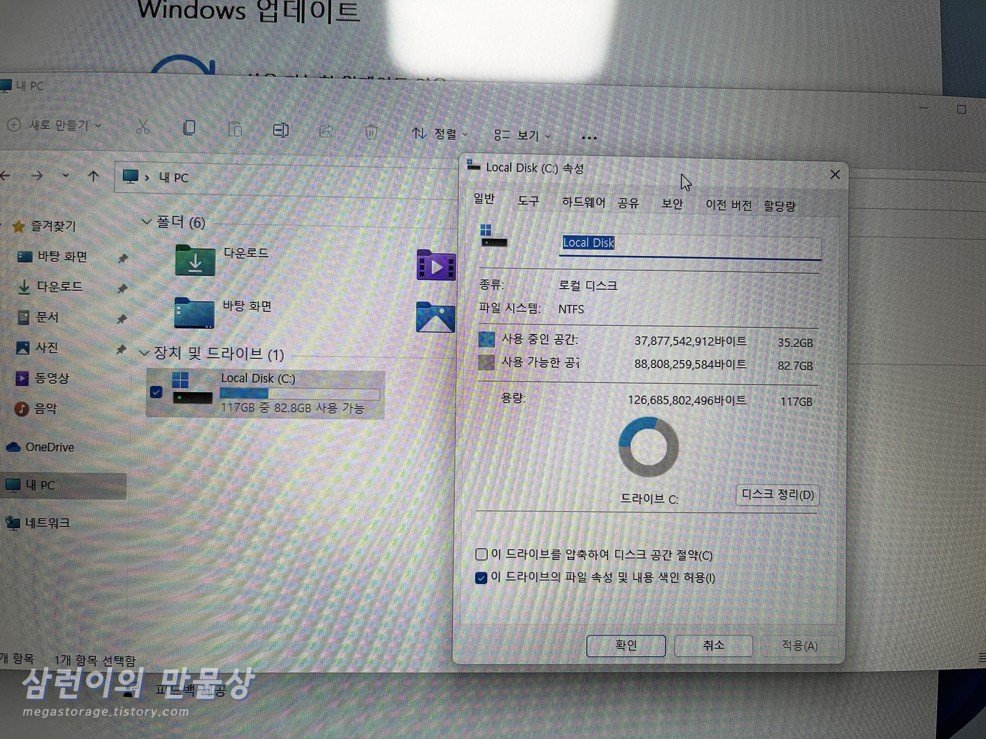 최초 설정 후 C 드라이브의 용량을 확인해보니, 남은 용량은 82.7GB 입니다.