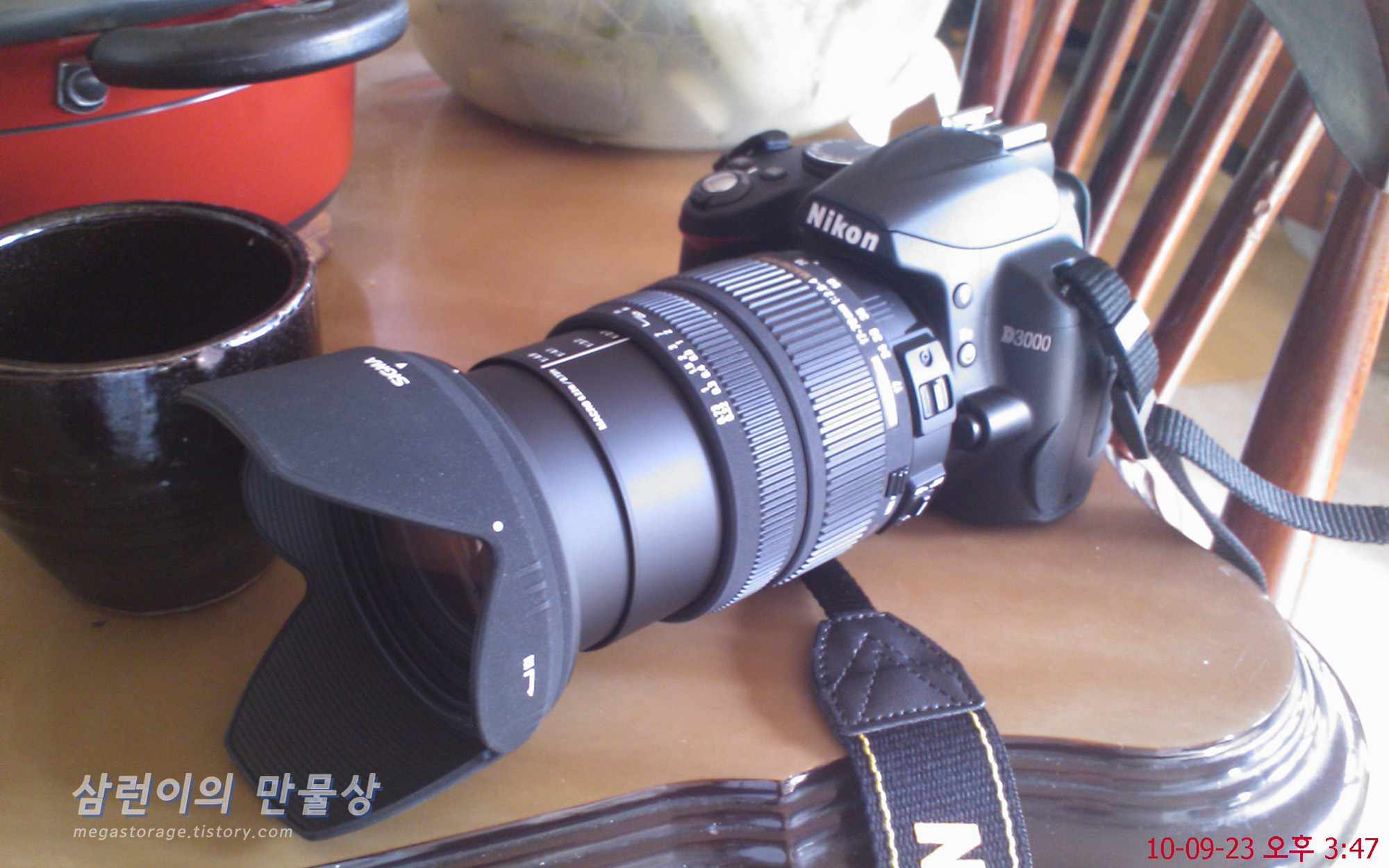 제 첫 카메라입니다. 니콘의 엔트리급 DSLR인 D3000 입니다. D90 후속기로 나왔습니다. 렌즈는 시그마의 17-70mm OS(F2.8-4) 입니다. 렌즈에 손떨방이 있고 70mm에서 적당한 접사도 가능해서 상당히 잘 사용했던 렌즈입니다.