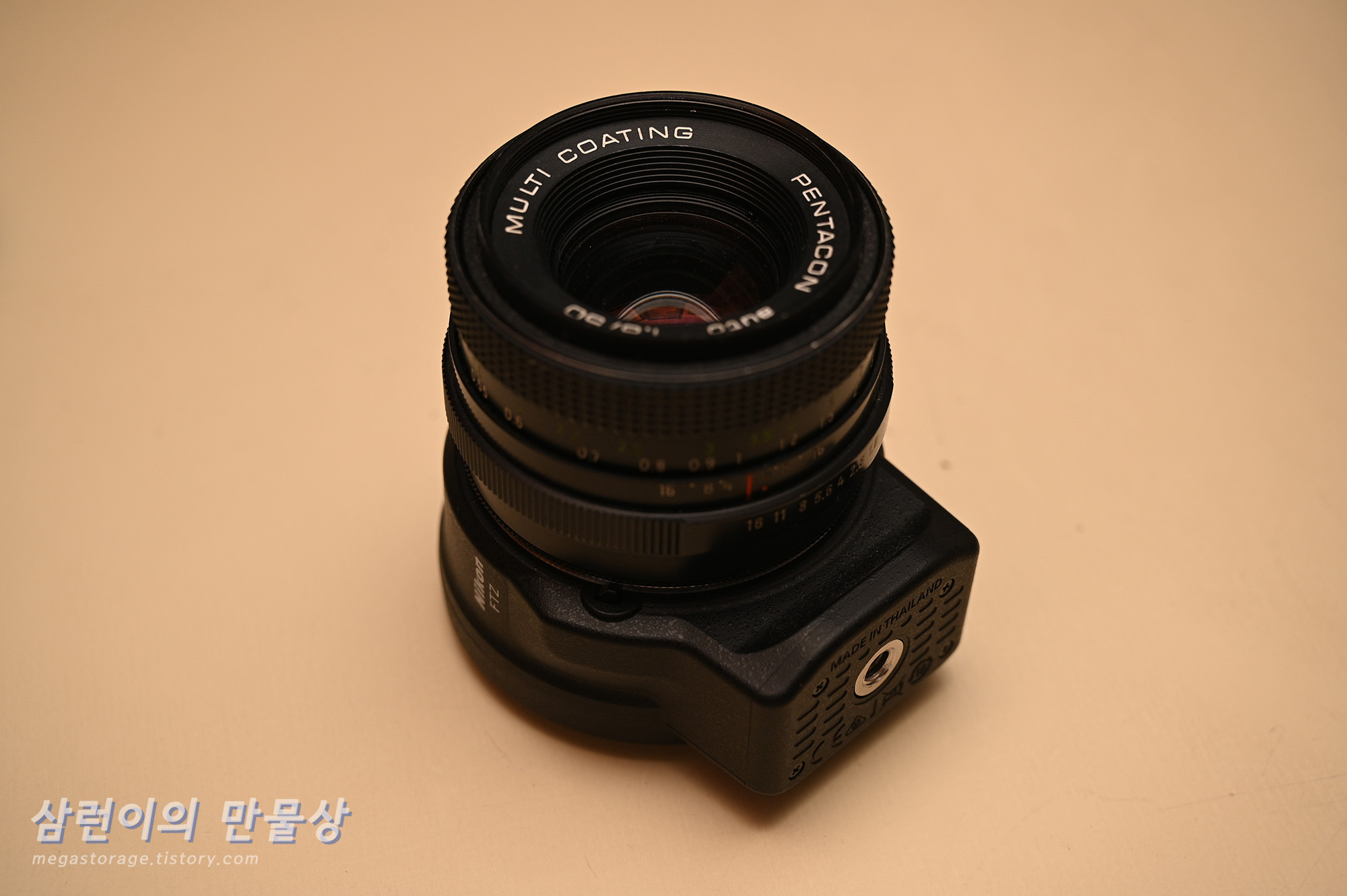 펜타콘 50.8 렌즈의 후면입니다. M42 to NIKON 아답터 링이 장착된 상태입니다.