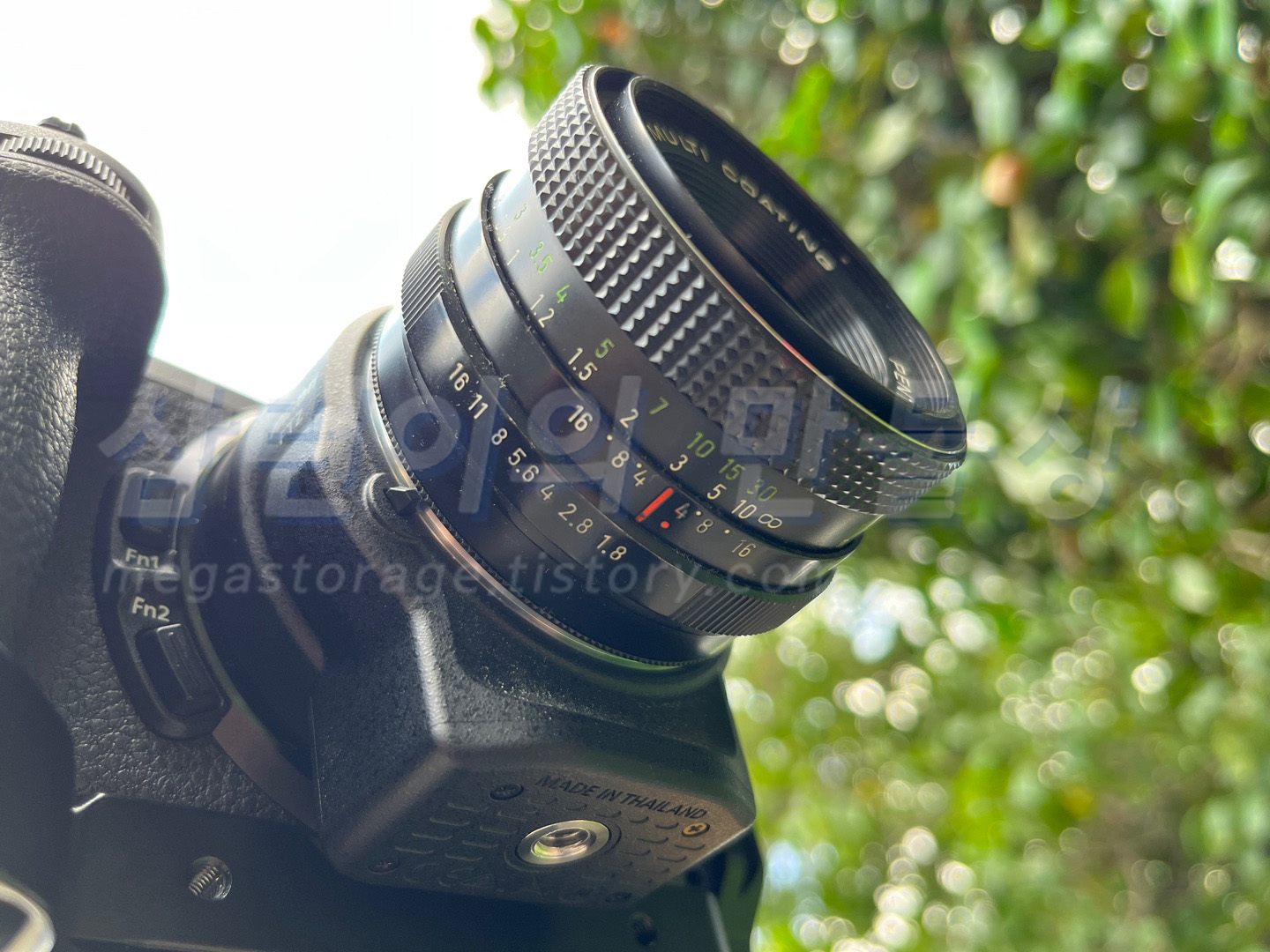 펜타콘 50.8 렌즈의 전면에는 화각(50mm), 최대 개방 조리개(F1.8)과 렌즈의 특수 사양(Multi Coating)이 있습니다. auto는 무슨 뜻인지 모르겠습니다. 수동 렌즈인데 오토..?