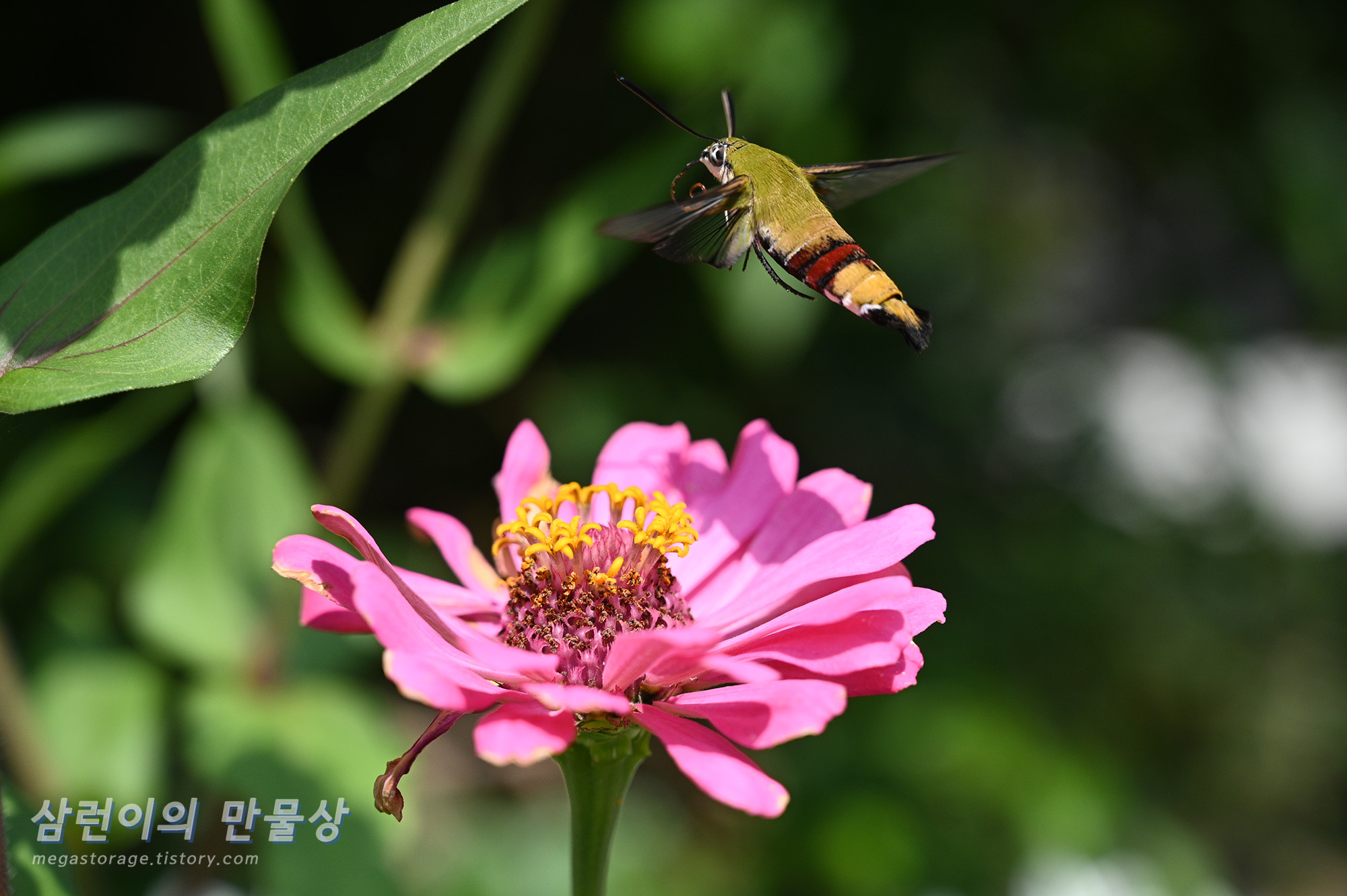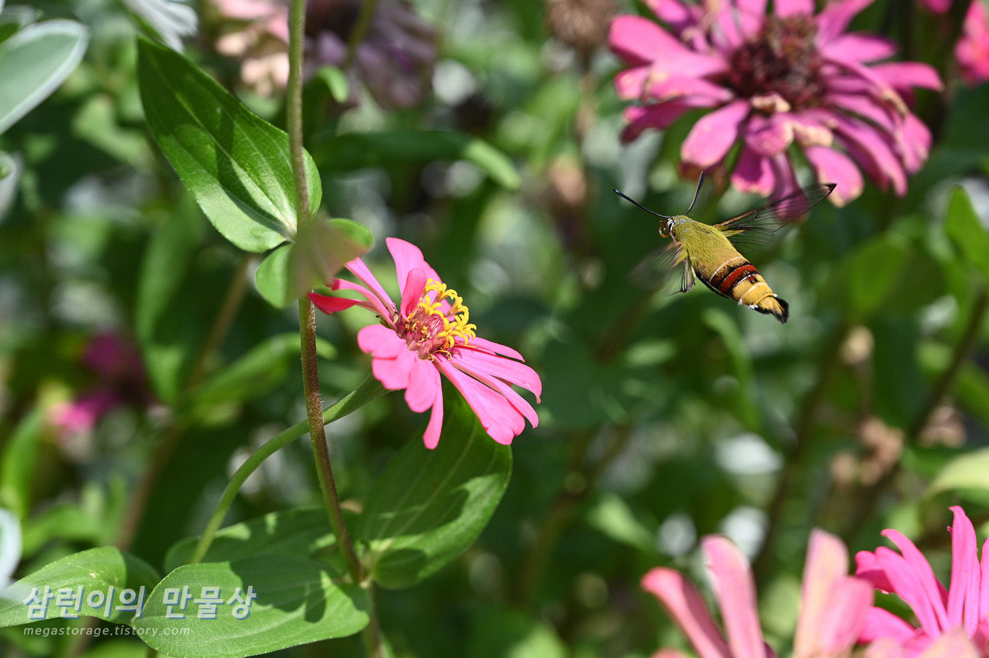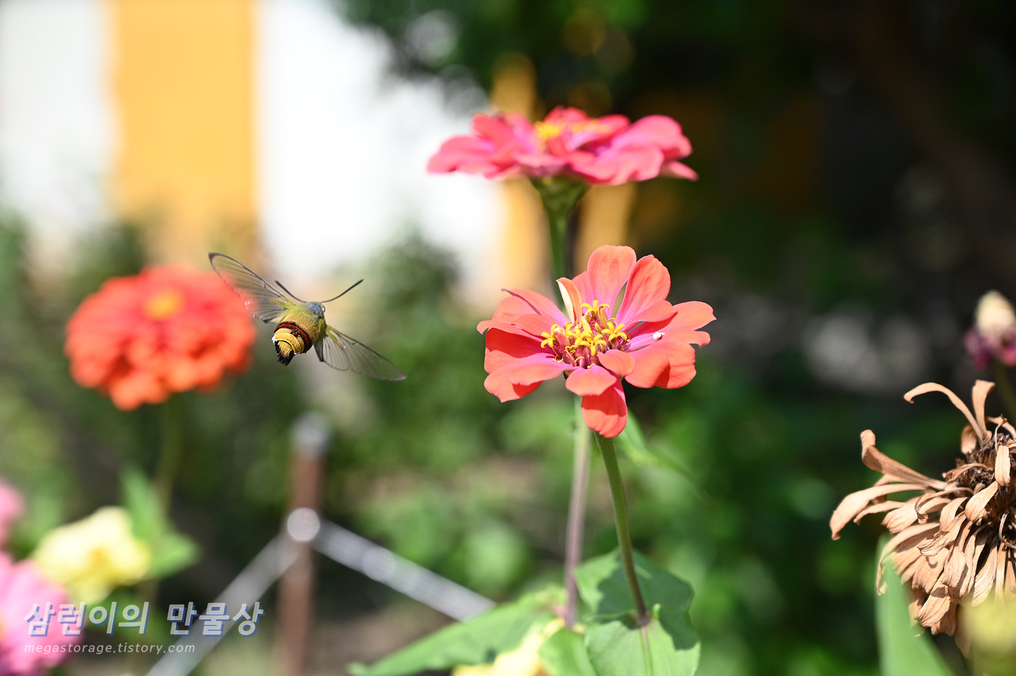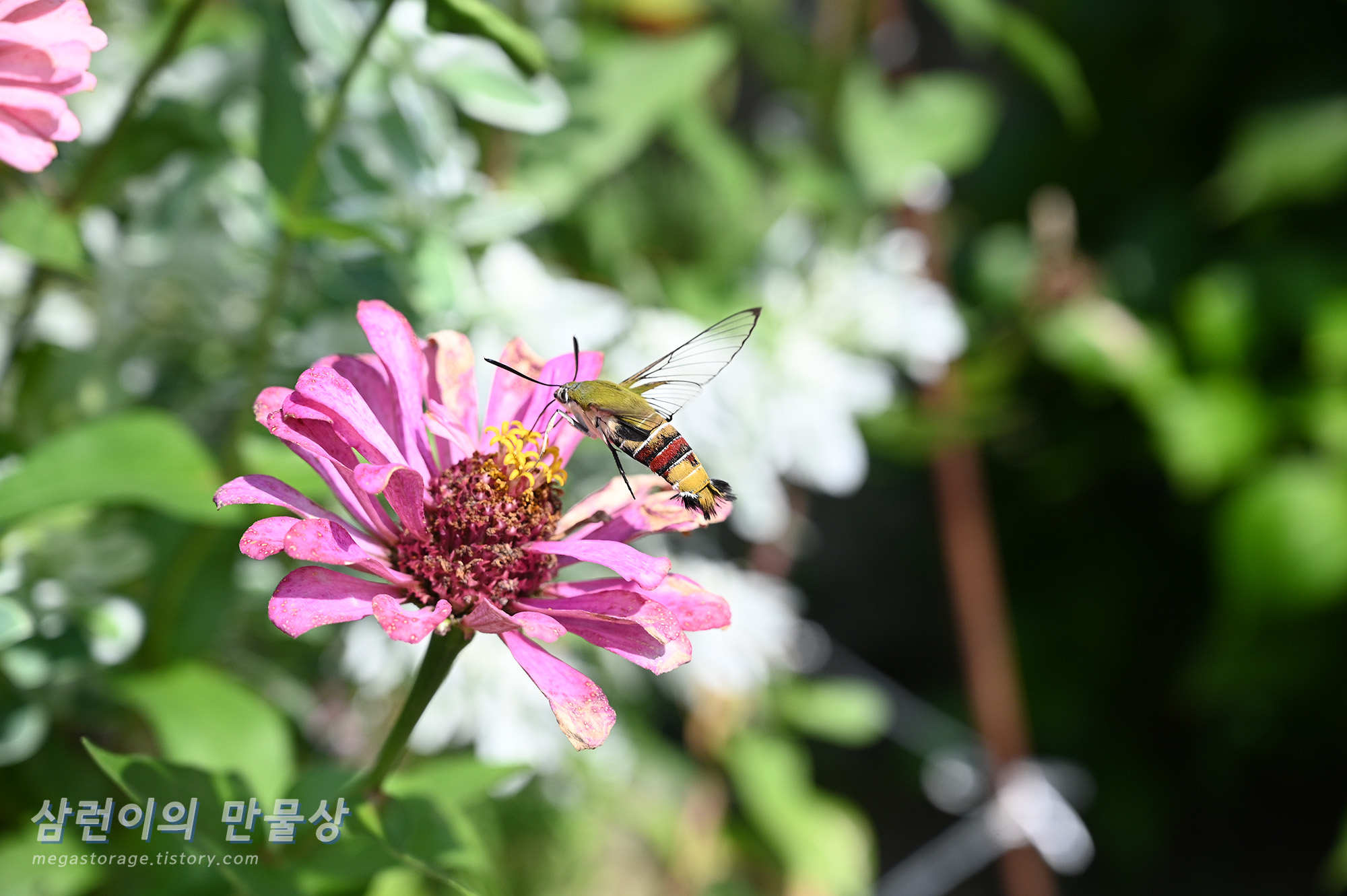 위의 백일홍을 찍은 다음 날, 벌새 같은 것이 날아다니길래 카메라 들고 달려갔습니다. 제가 벌새라고 알고 있던 녀석의 실제 이름은 '꼬리박각시' 였습니다.