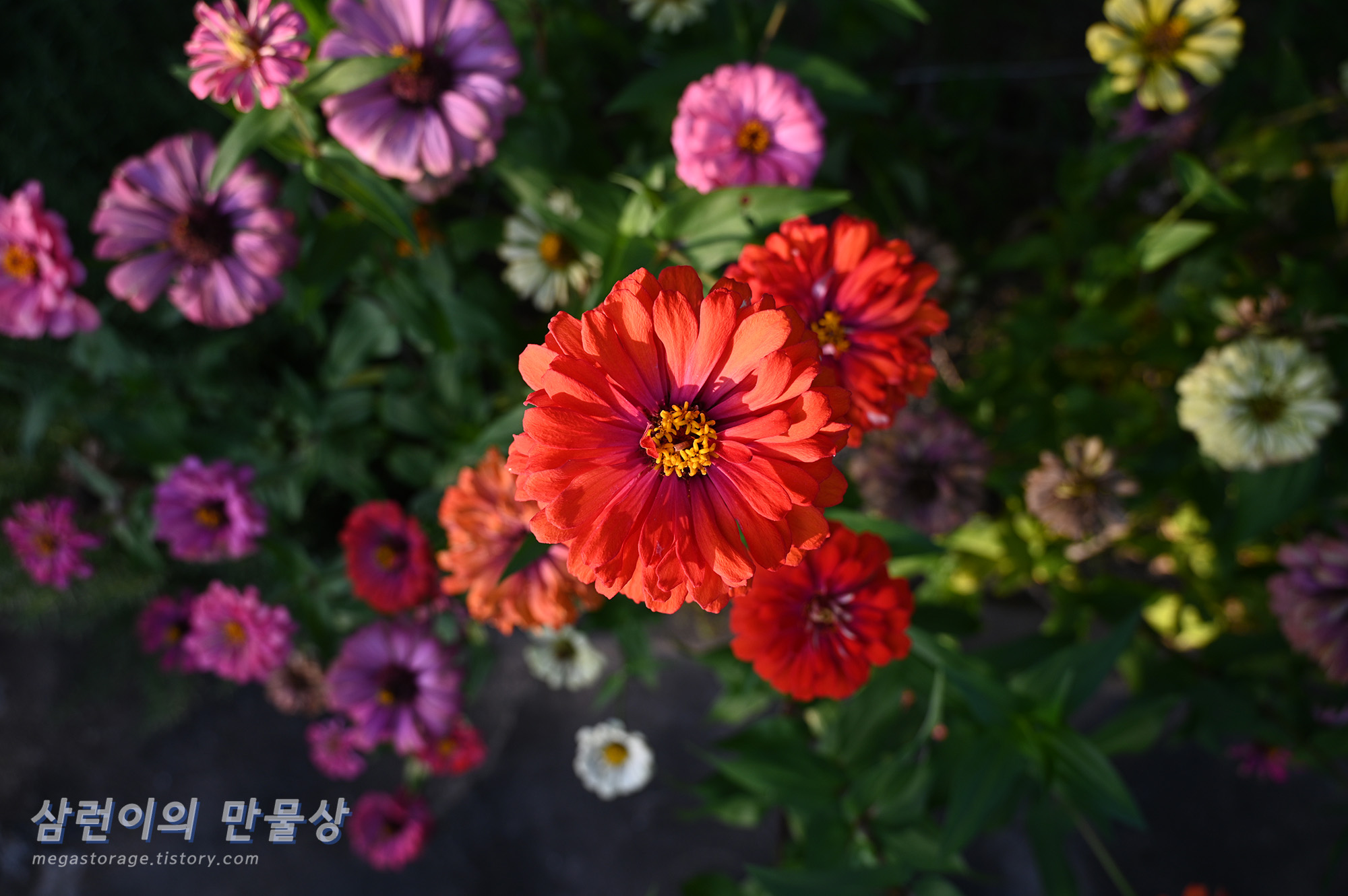 이번 추석에 본가 내려갔다가, 본가 근처에서 촬영한 백일홍입니다. 노을이 지고 있는 도중에 다양한 색상들의 백일홍이 너무 예뻐서 찍었습니다.