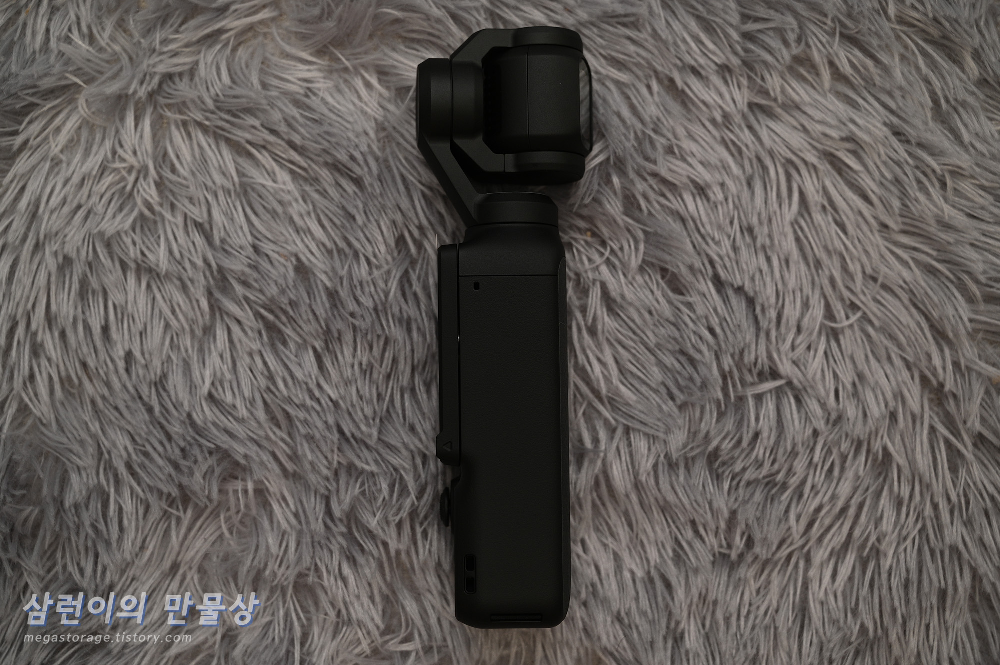 좌측면 입니다. 마이크와 POCKET 3 문구, 그리고 하단에는 micro SD카드 슬롯이 있습니다.
