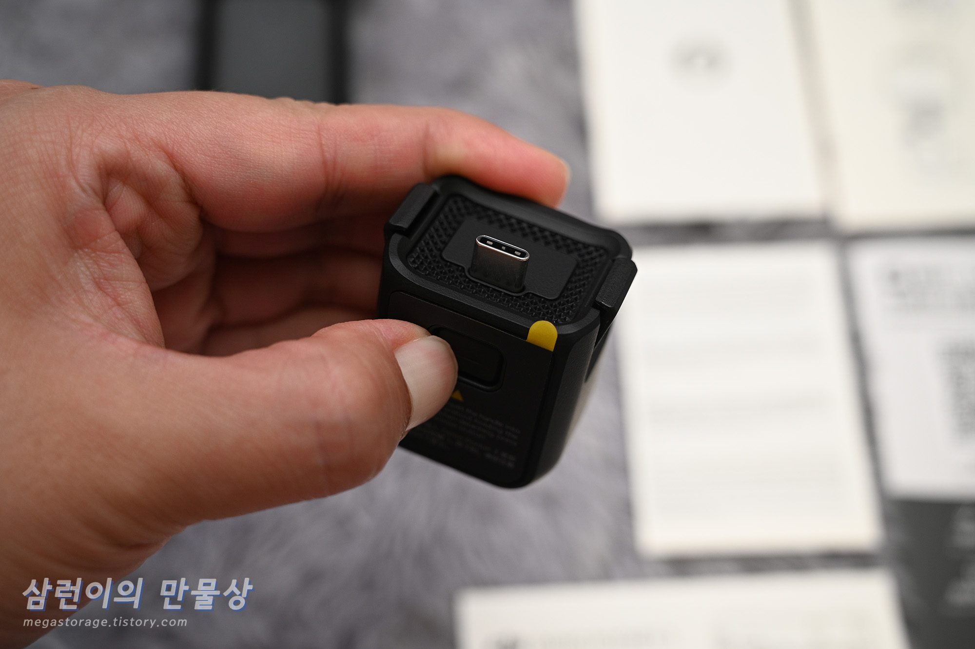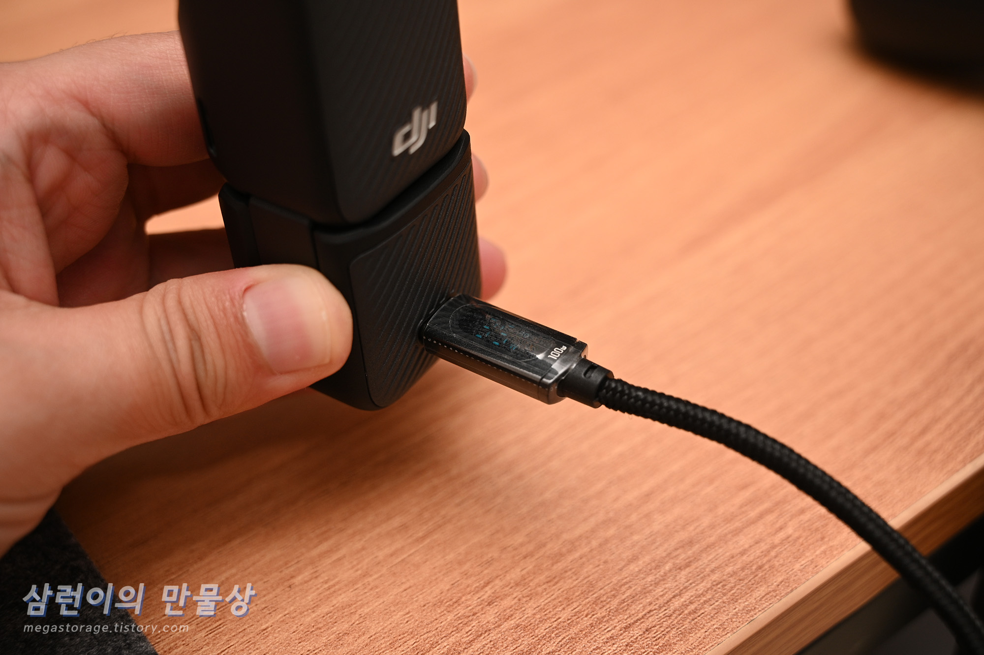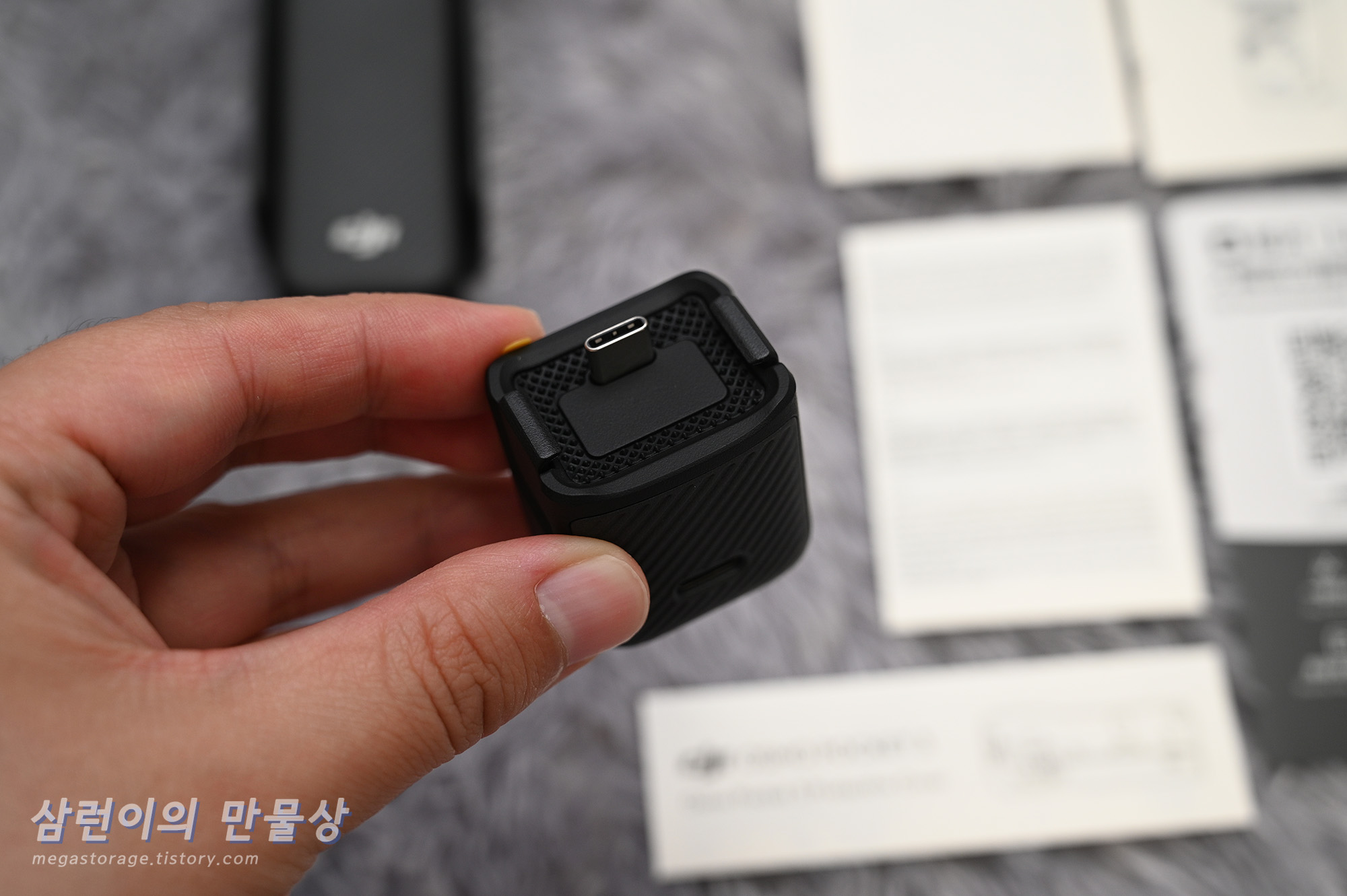 DJI 오즈모 포켓용 핸들입니다. DJI 오즈모 포켓의 하단부에 연결되므로, USB-C 포트가 있습니다.