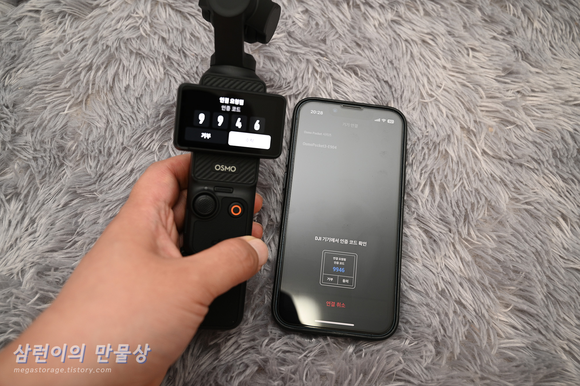 DJI 앱에서 연결하면, 위 사진처럼 DJI 오즈모 포켓3가 보는 세상을 폰으로 확인할 수 있습니다. 모든 조작과 설정을 할 수 있습니다. 이 때는 폰과 포켓3간 와이파이로 연결됩니다.