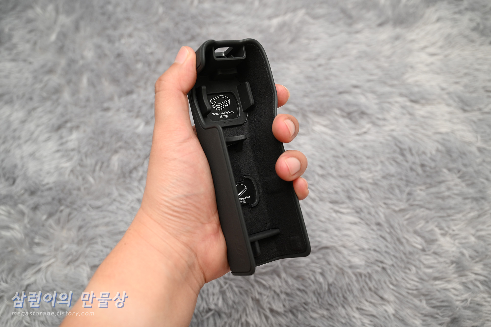 센서의 크기가 1인치로 커진 만큼, 렌즈의 크기도 커졌습니다. 기존 포켓2의 광각 렌즈는 사이즈 문제로 사용 자체가 안 되겠네요.