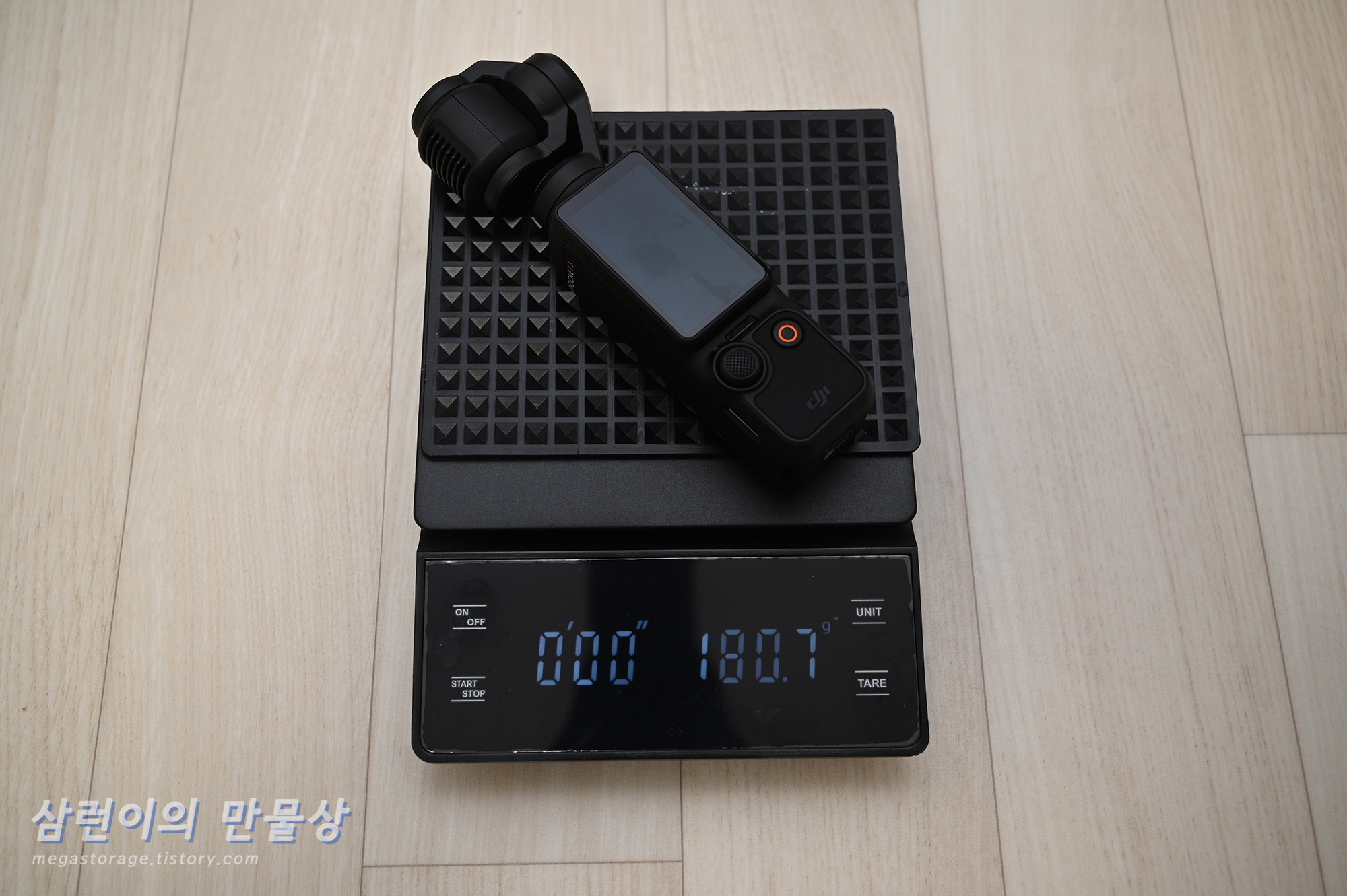 DJI 오즈모 포켓3는 180.7g 으로 측정되었습니다. 거의 60g 증가했습니다.