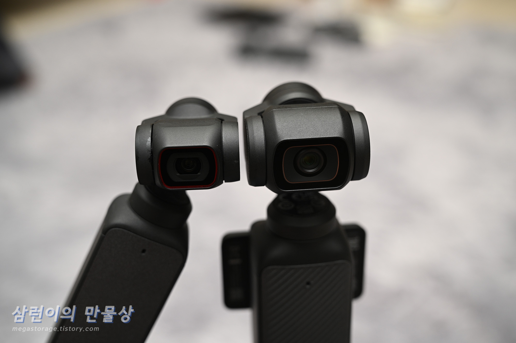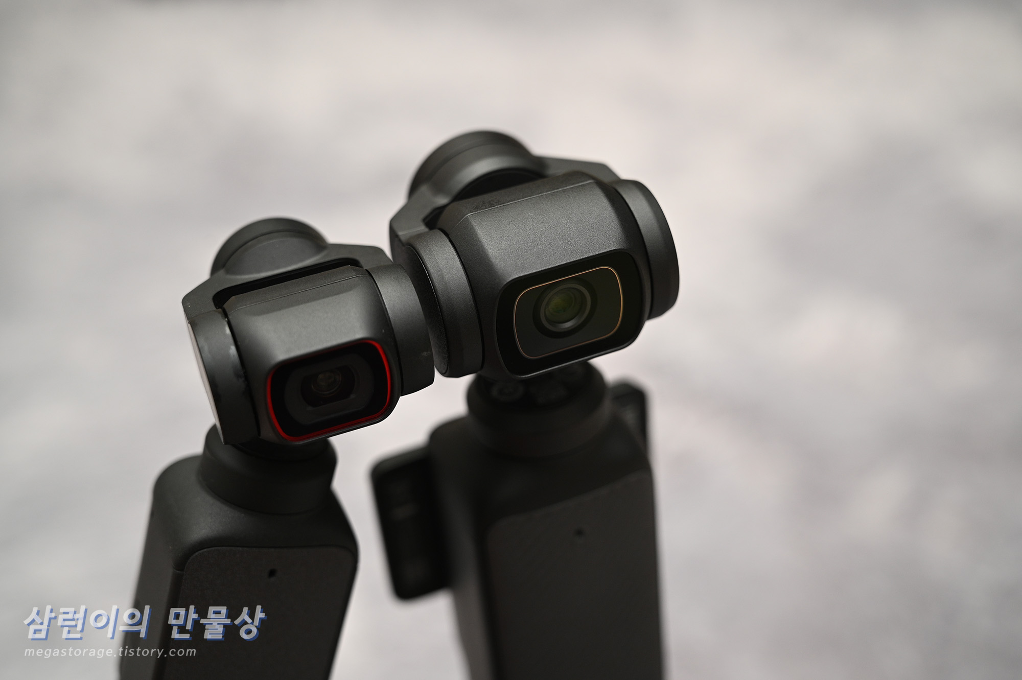 DJI 포켓2와 DJI 오즈모 포켓3 렌즈 크기 비교