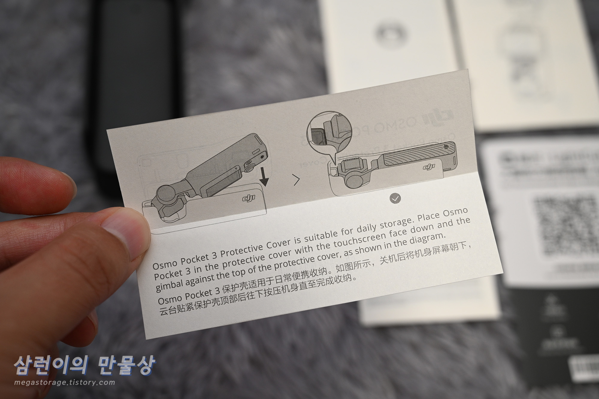 DJI 오즈모 포켓3 보호 커버의 올바른 사용법을 안내하고 있습니다.