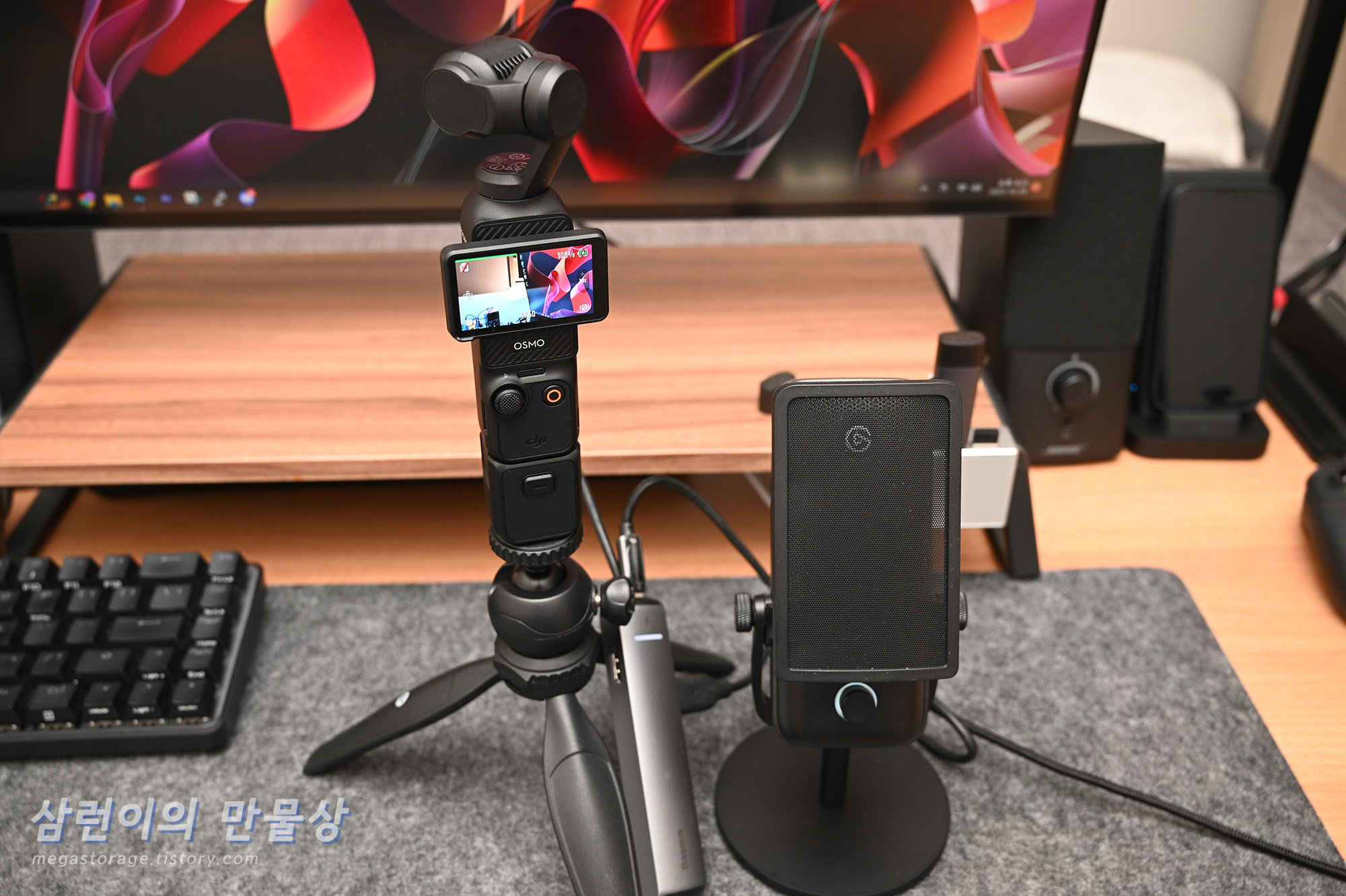 집에 있는 Elgato의 WAVE-1 USB 유선 마이크도 연결해봤습니다. 정말 잘 됩니다. 고성능 마이크라서 음성 녹음 품질도 꽤 좋습니다. 유선으로 연결한 후 유투브용 영상 찍어도 충분하겠습니다.