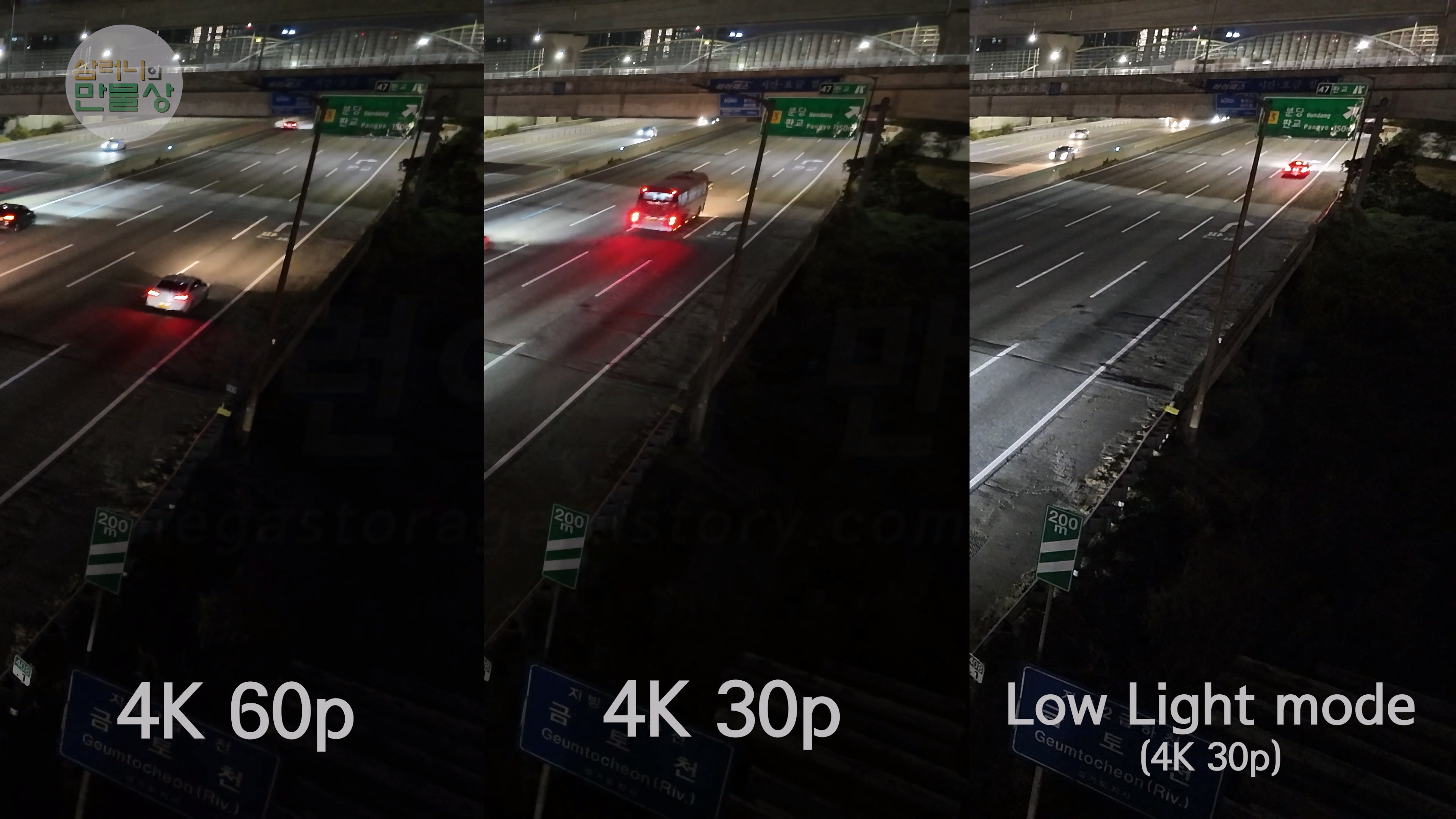 DJI 오즈모 포켓3로 야간 촬영을 해봤습니다. 4K 60p, 4K 30p 및 저조도 모드(4K 30p)로 촬영했습니다.