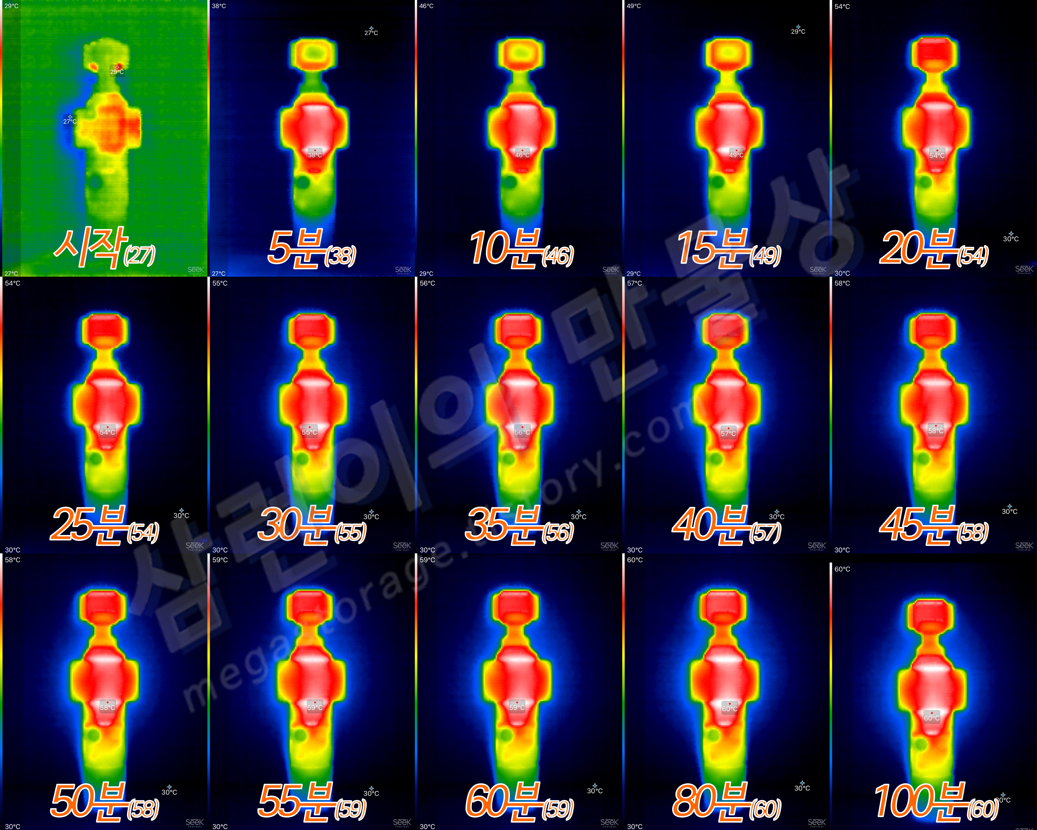 촬영 시작 후 15분 만에 50도에 도달했으며, 60분째 됐을 쯤에 60도에 도달했습니다.