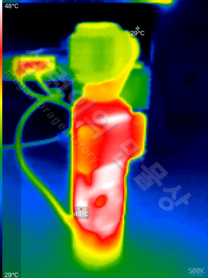 충전 70% 시점에서 기기의 온도는 약 48도로 측정되었습니다.