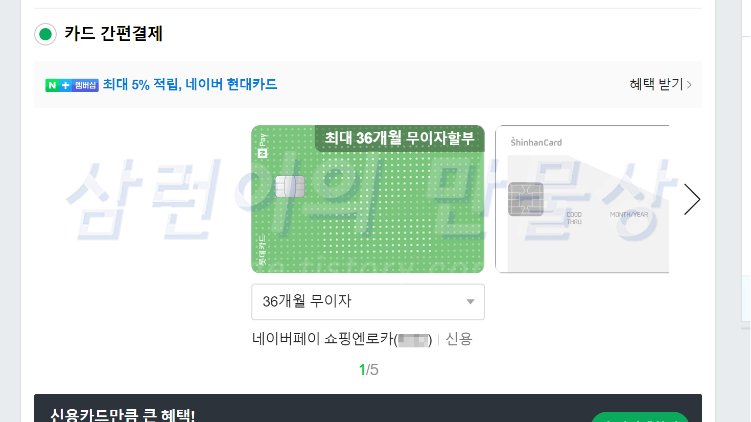카드 신청한지 10분도 안 됐는데, 네이버 페이에 등록된거 실화인가요?? 즉시 사용 가능합니다. 세상에.. '36개월 무이자'가 저를 유혹합니다...