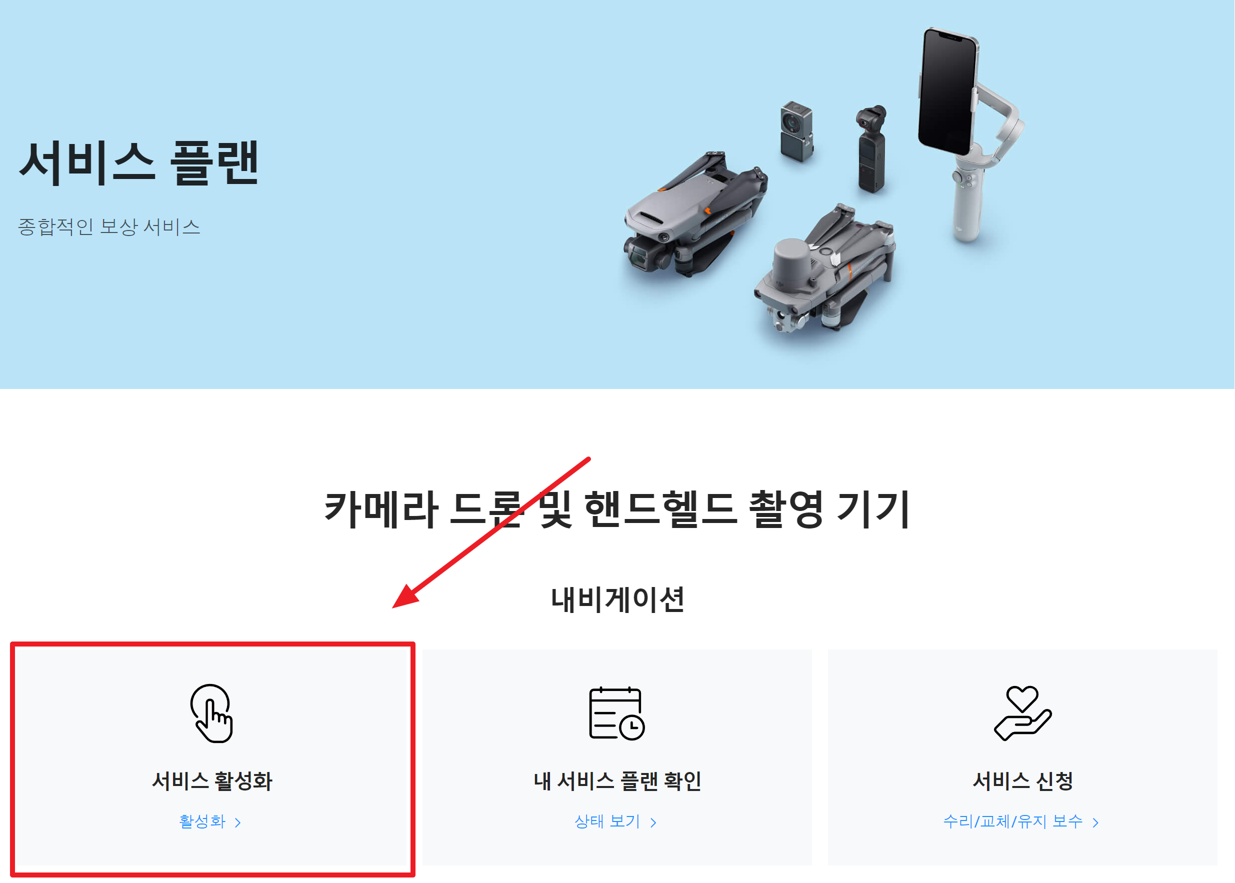 DJI Care Refresh를 등록하기 위해서 DJI 고객지원( https://www.dji.com/kr/support/service ) 페이지로 이동합니다. 그리고 로그인을 진행합니다.