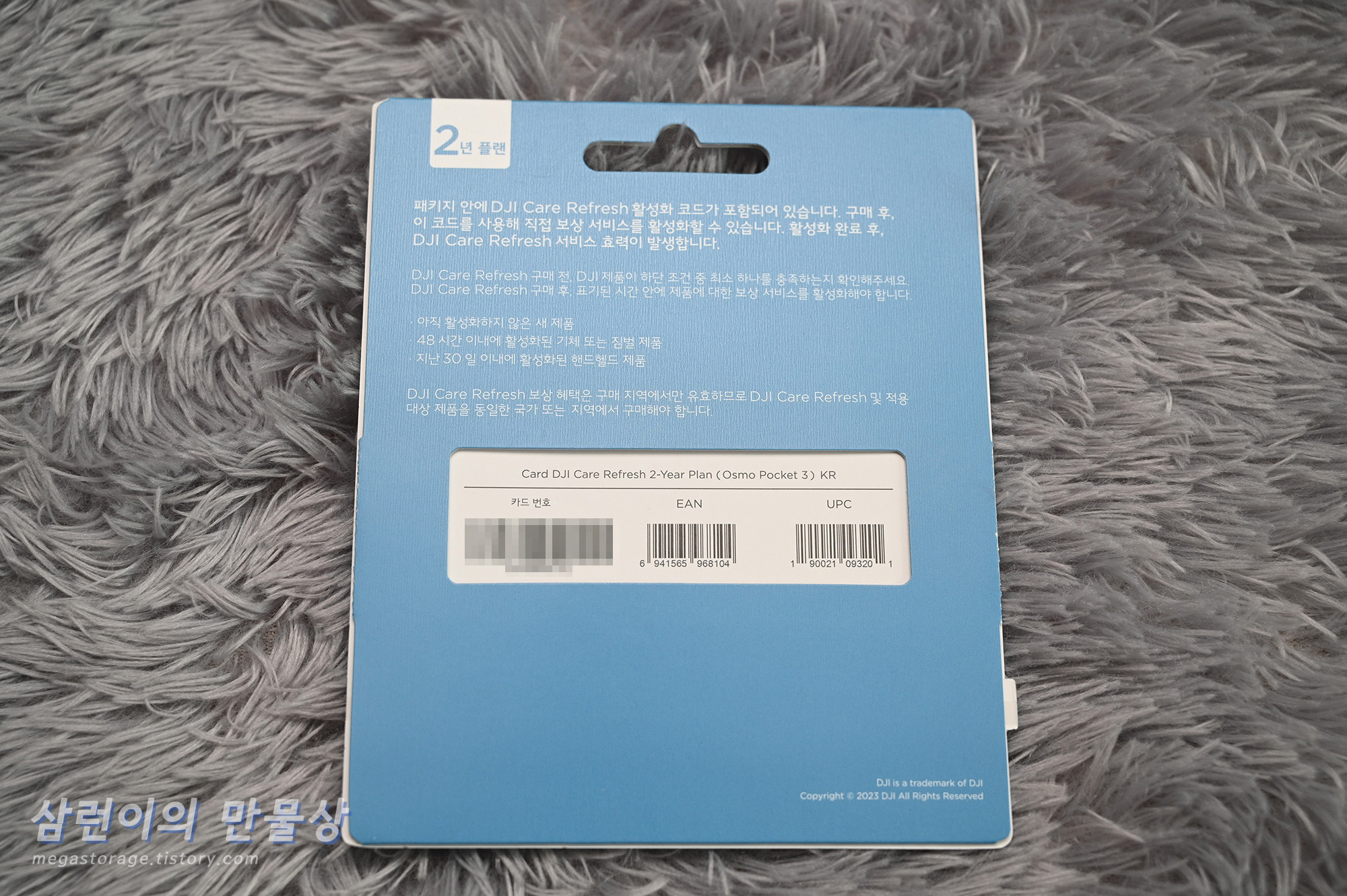 DJI 오즈모 포켓3 전용 DJI Care Refresh 2년 플랜 쿠폰입니다.