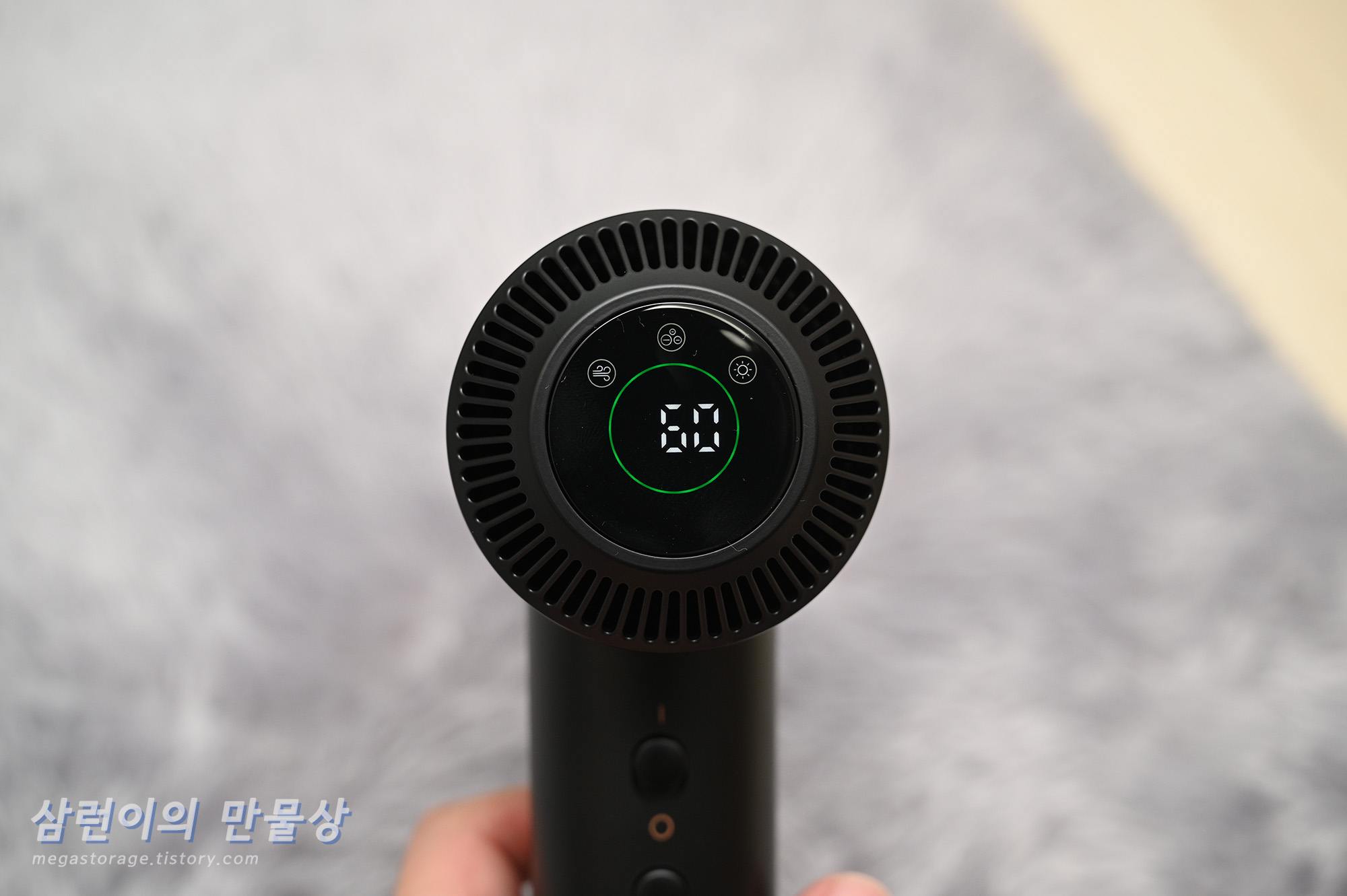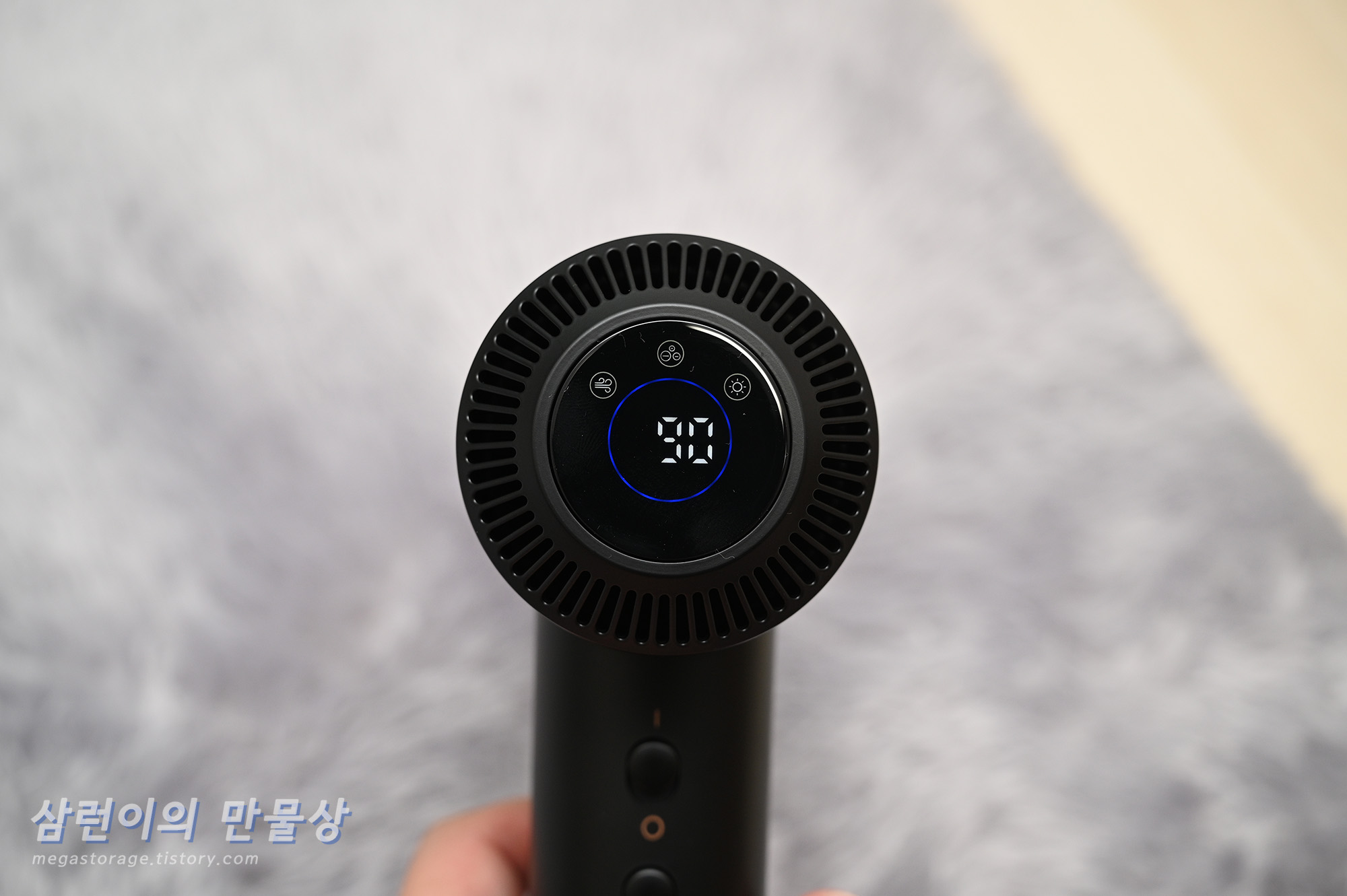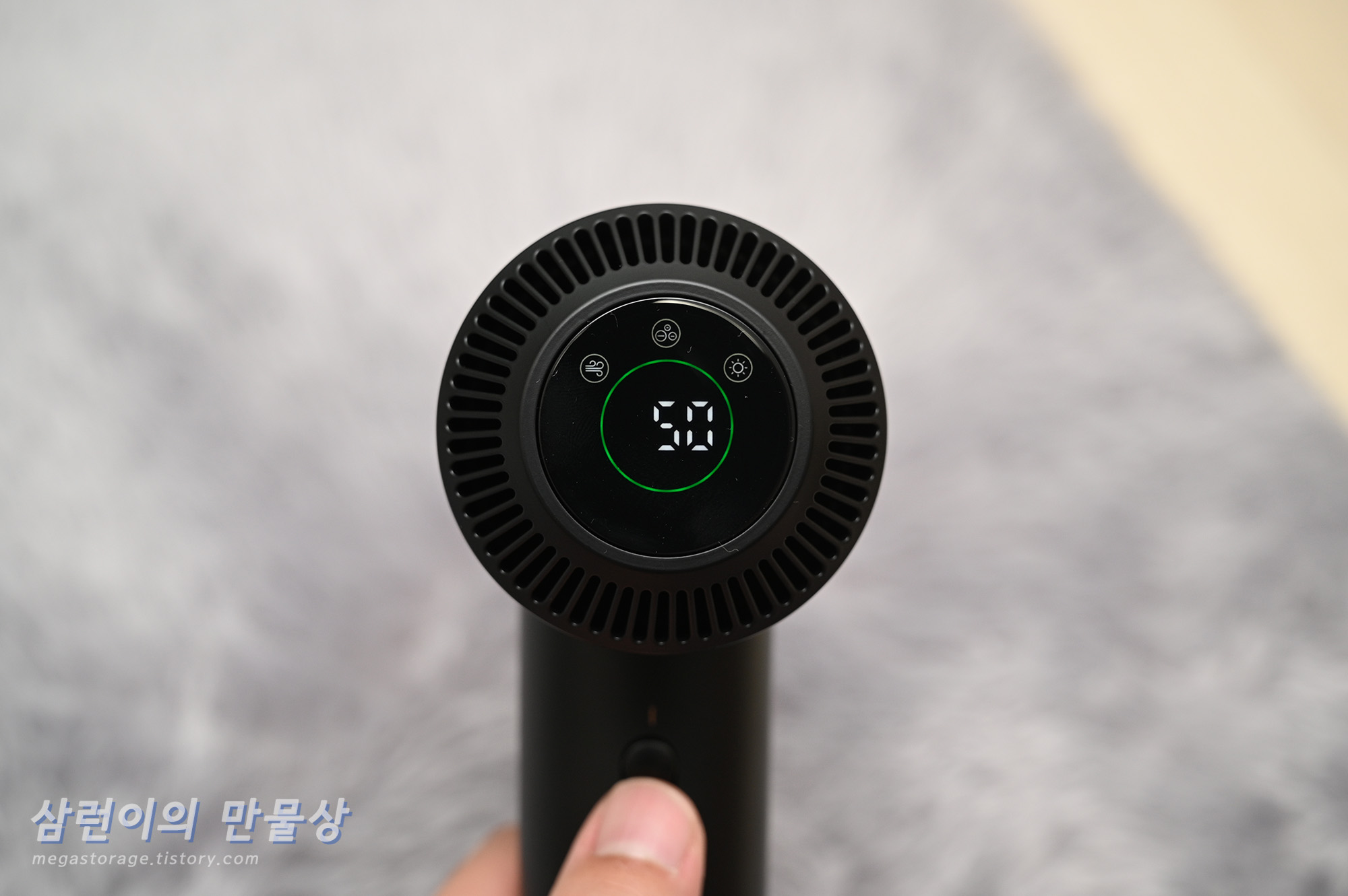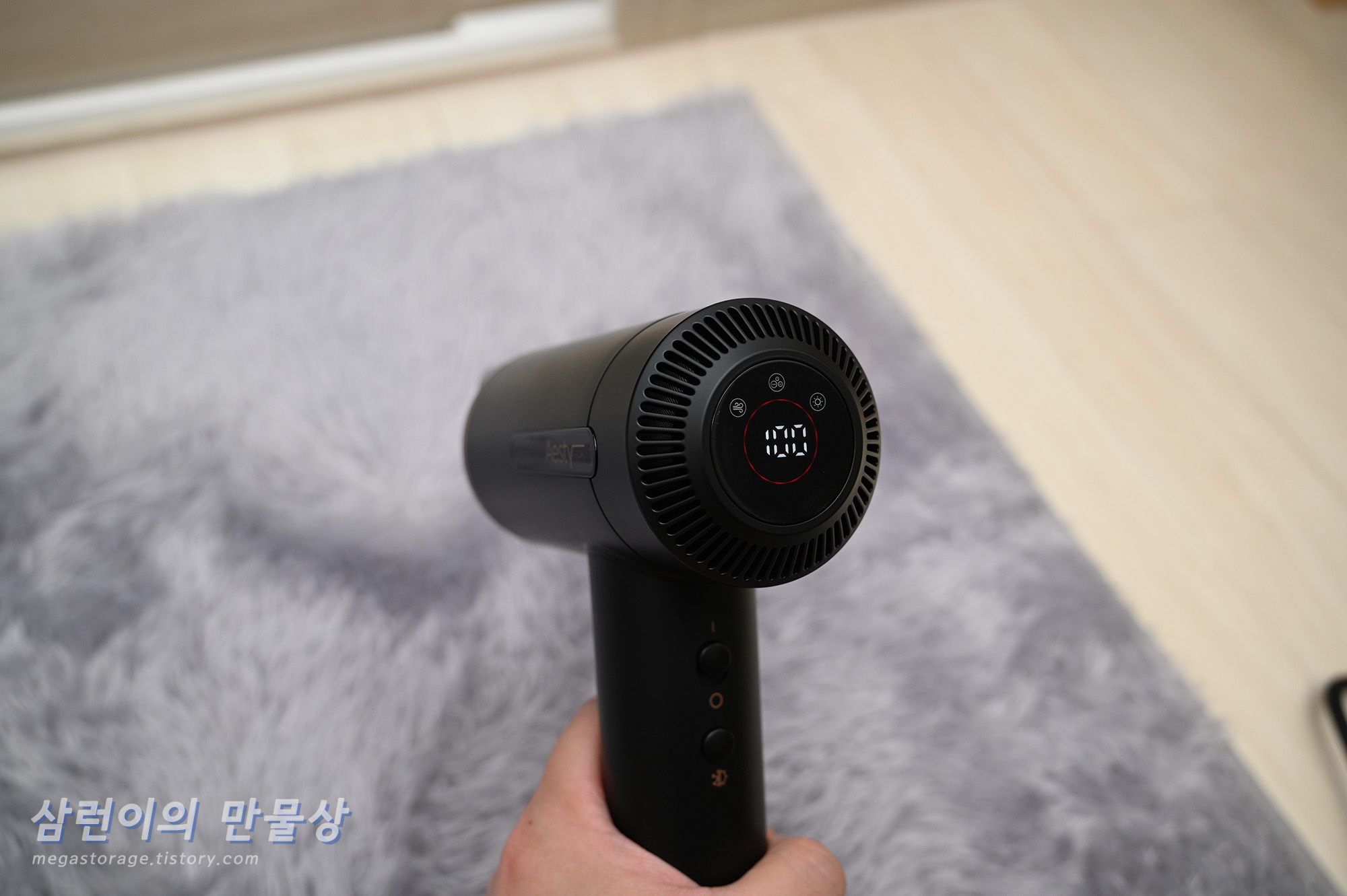 후면의 전원 버튼을 위로 올렸더니, 약 1초 뒤에 바람이 위이잉!! 하고 나오기 시작했습니다.
