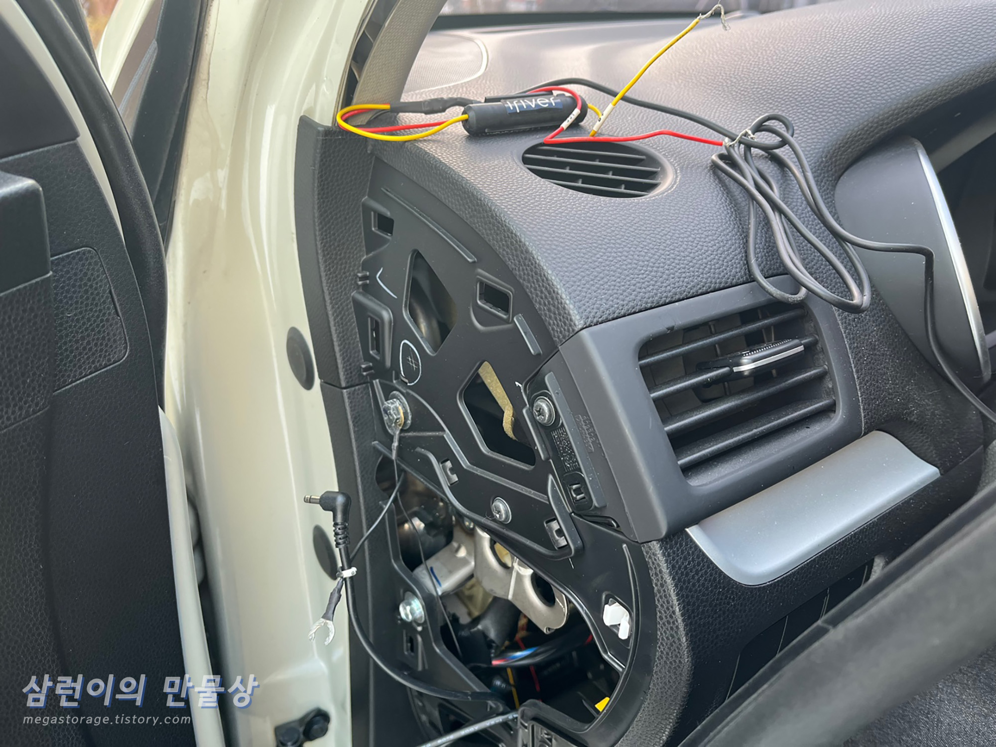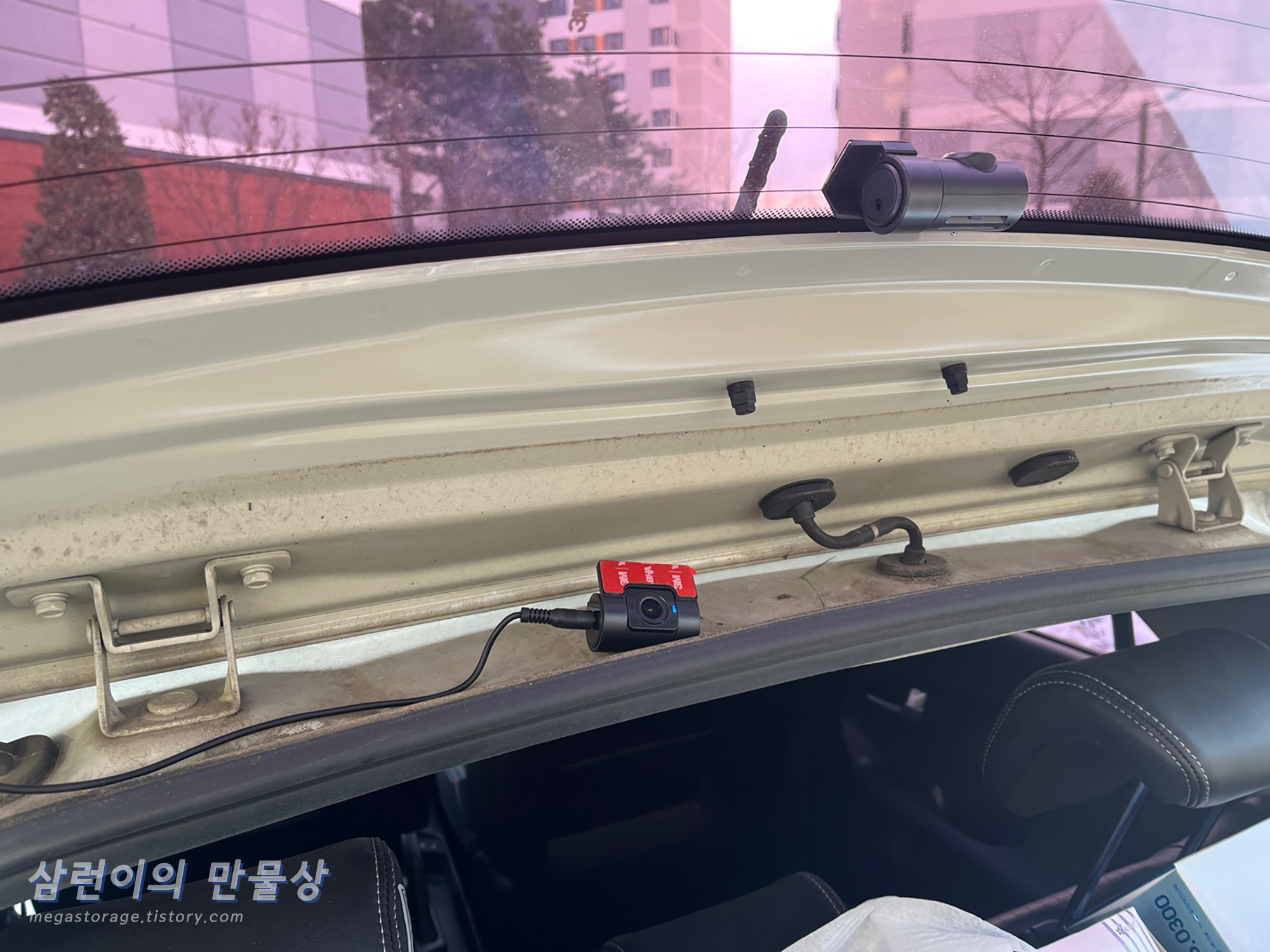 기존 후방 블랙박스 카메라는 본가에 내려가면 드라이기로 제거하기로 하고, 위 사진처럼 적당하게 부착했습니다.