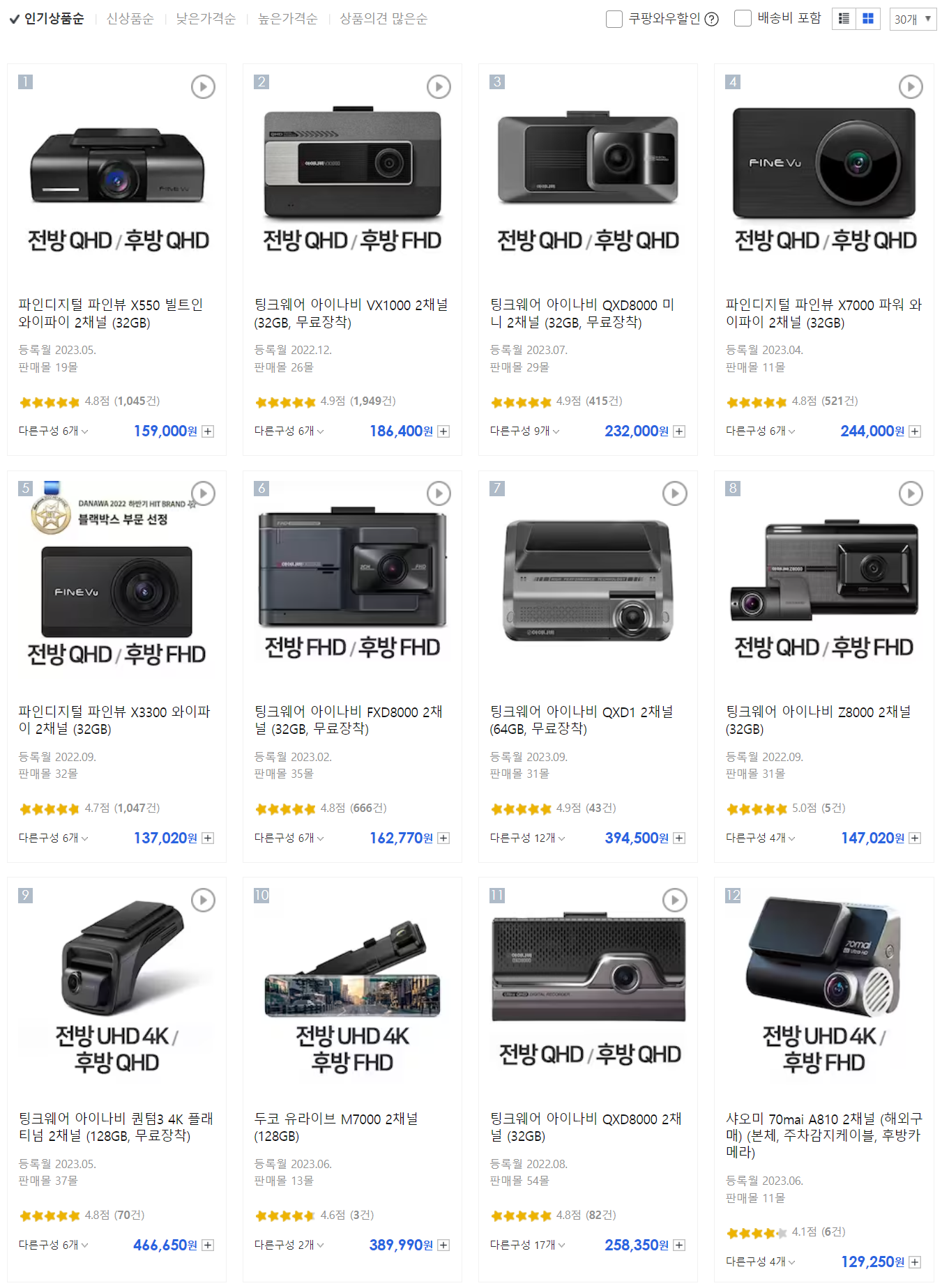 처음엔 알리 익스프레스에서 샤오미 70mai A810 블랙박스를 구입하려고 했었습니다. 그런데 안타깝게도 광군절과 블랙프라이데이 대할인 기간이 지난 직후에 블랙박스가 고장나버려서, 현재 기준 정가를 주고 구입하기엔 너무 아쉬웠습니다. 전방과 후방, 그리고 추가 장비를 구입하면 15만원에서 20만원 사이 정도가 됩니다. 그래서 샤오미 70mai A810은 나중에 바꾸게 될 차량에 설치하기로 마음 먹고, 다른 모델을 찾아봅니다.
