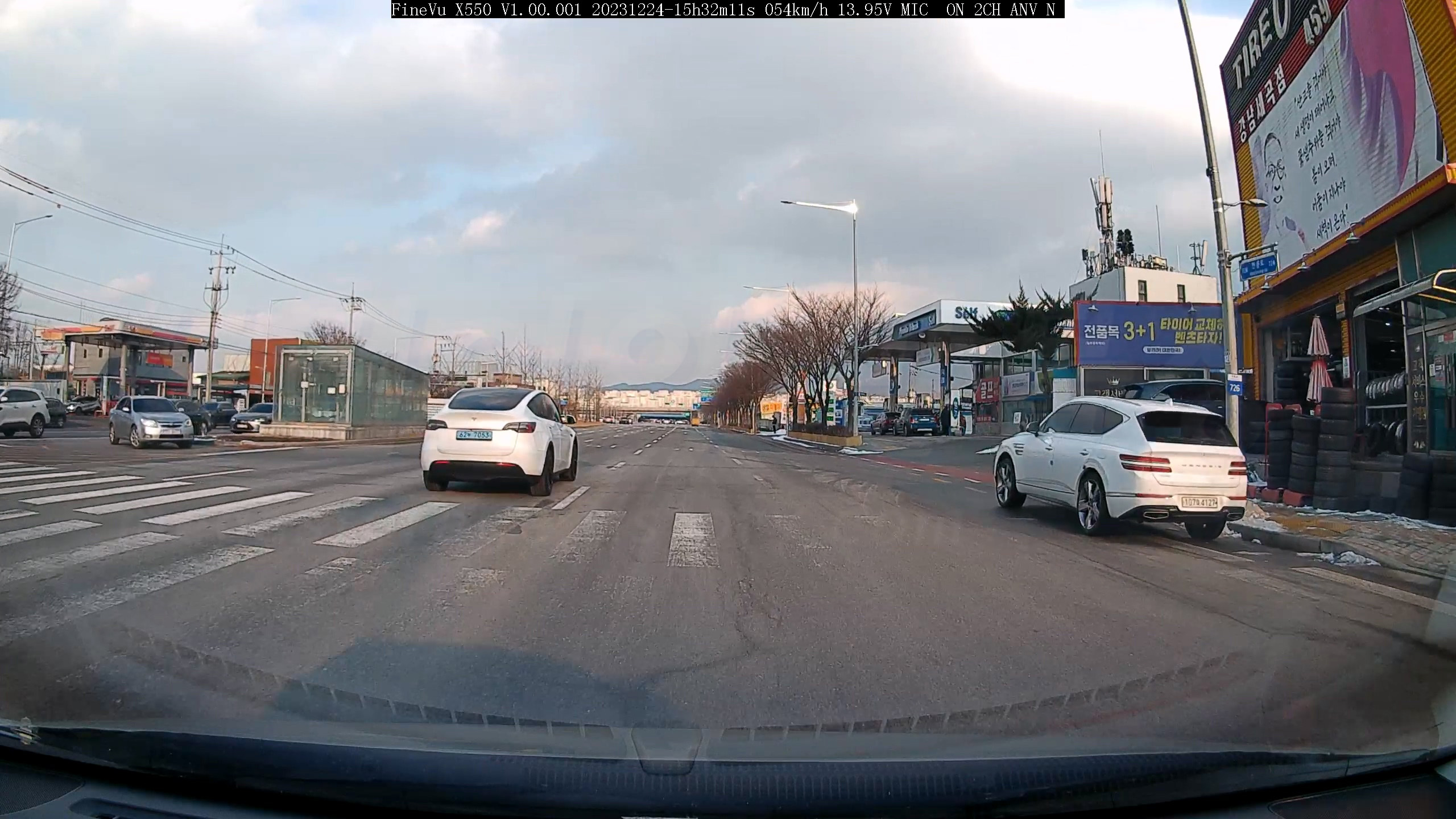 1차선으로 지나가는 GV80의 번호판을 확인할 수 없습니다. 자체 모자이크 된 느낌입니다.