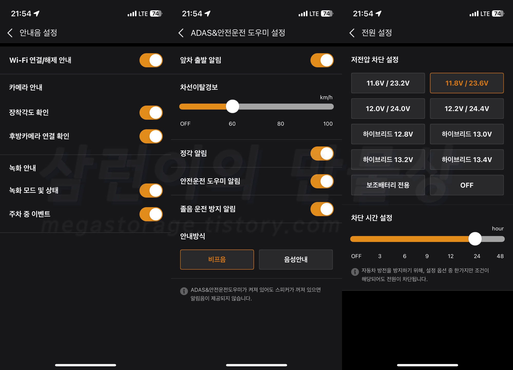 그 외 기타 설정을 할 수 있습니다. 전원 설정의 경우 저전압 차단과 시간 차단을 설정할 수 있습니다.