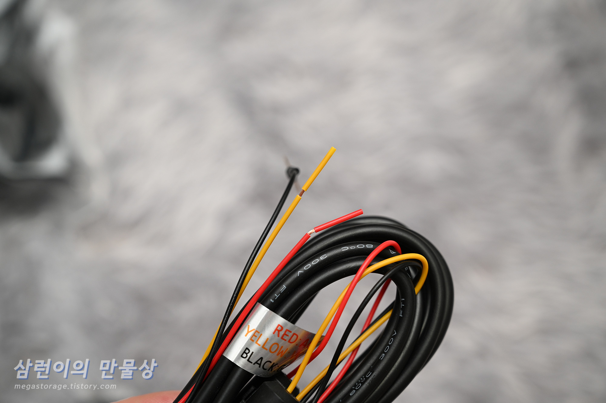 자동차 퓨즈박스와 연결되는 블랙박스 전원 케이블입니다.