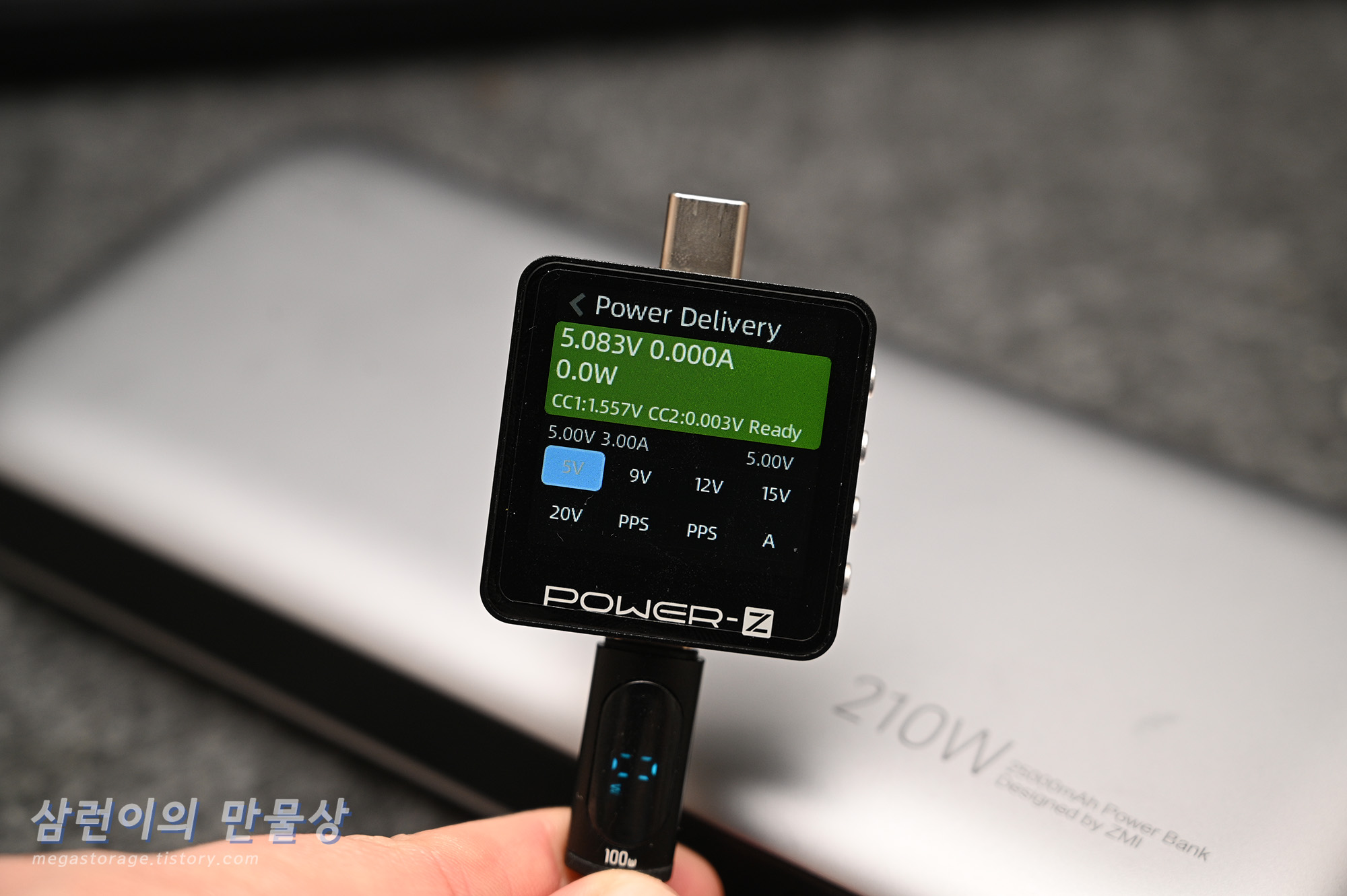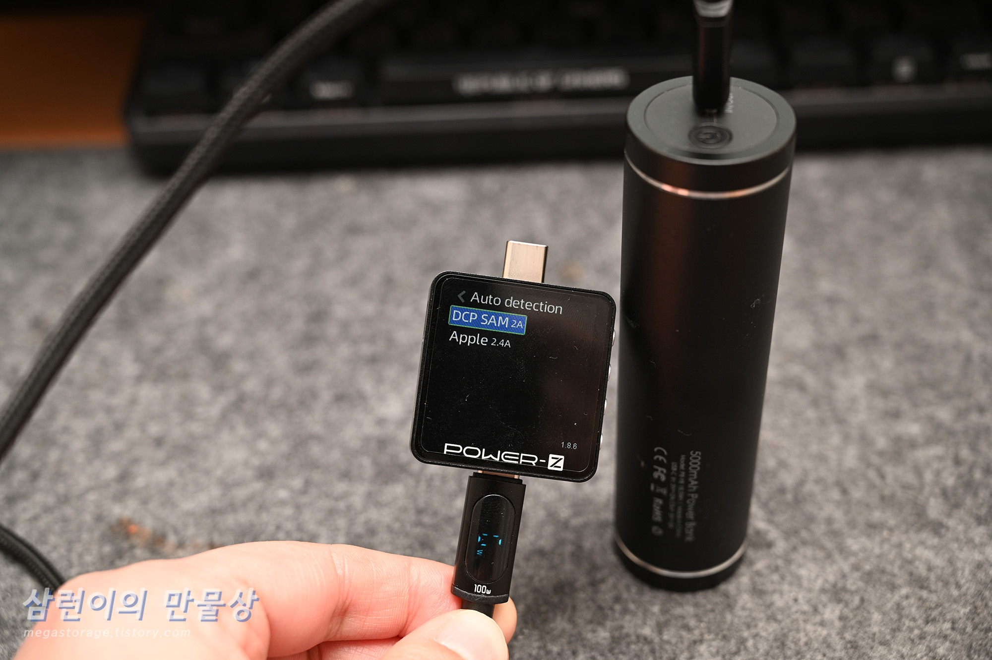 이번에는 ZMI의 25000mAh 보조배터리에 연결했습니다. 100W 출력을 지원하는 포트에 연결했더니 '샤오미 100W' 프로토콜을 지원한다고 나타납니다.