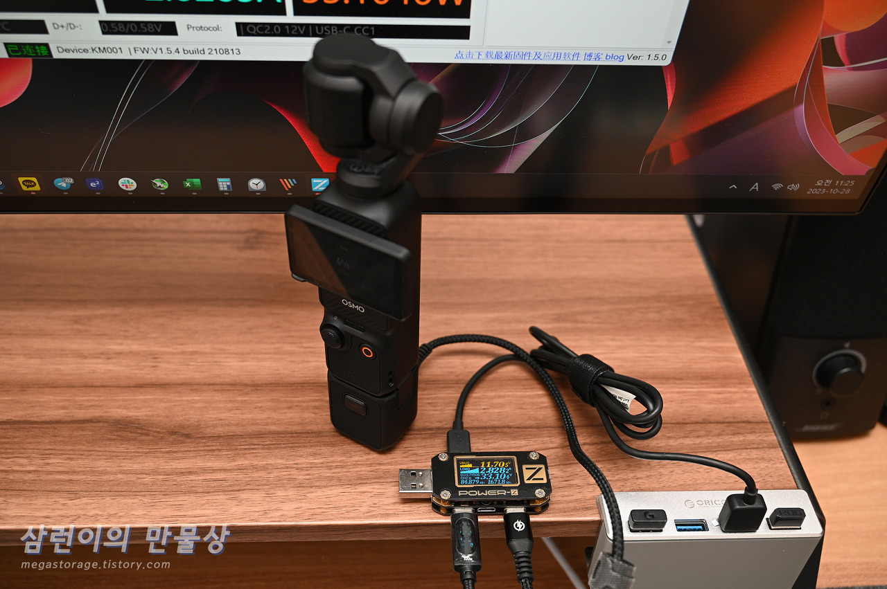 기존에 사용 중인 USB 계측기가 있습니다. ChargerLab의 POWER-Z KM001 입니다. KM001은 USB 타입 A, USB 타입 C, USB 타입 micro B의 입력과 출력을 측정할 수 있고, PC와 연결할 수 있어서 로그를 남길 수 있습니다. 게다가 연결한 USB 충전기의 스펙을 간단하게 알 수 있어서 편리합니다.