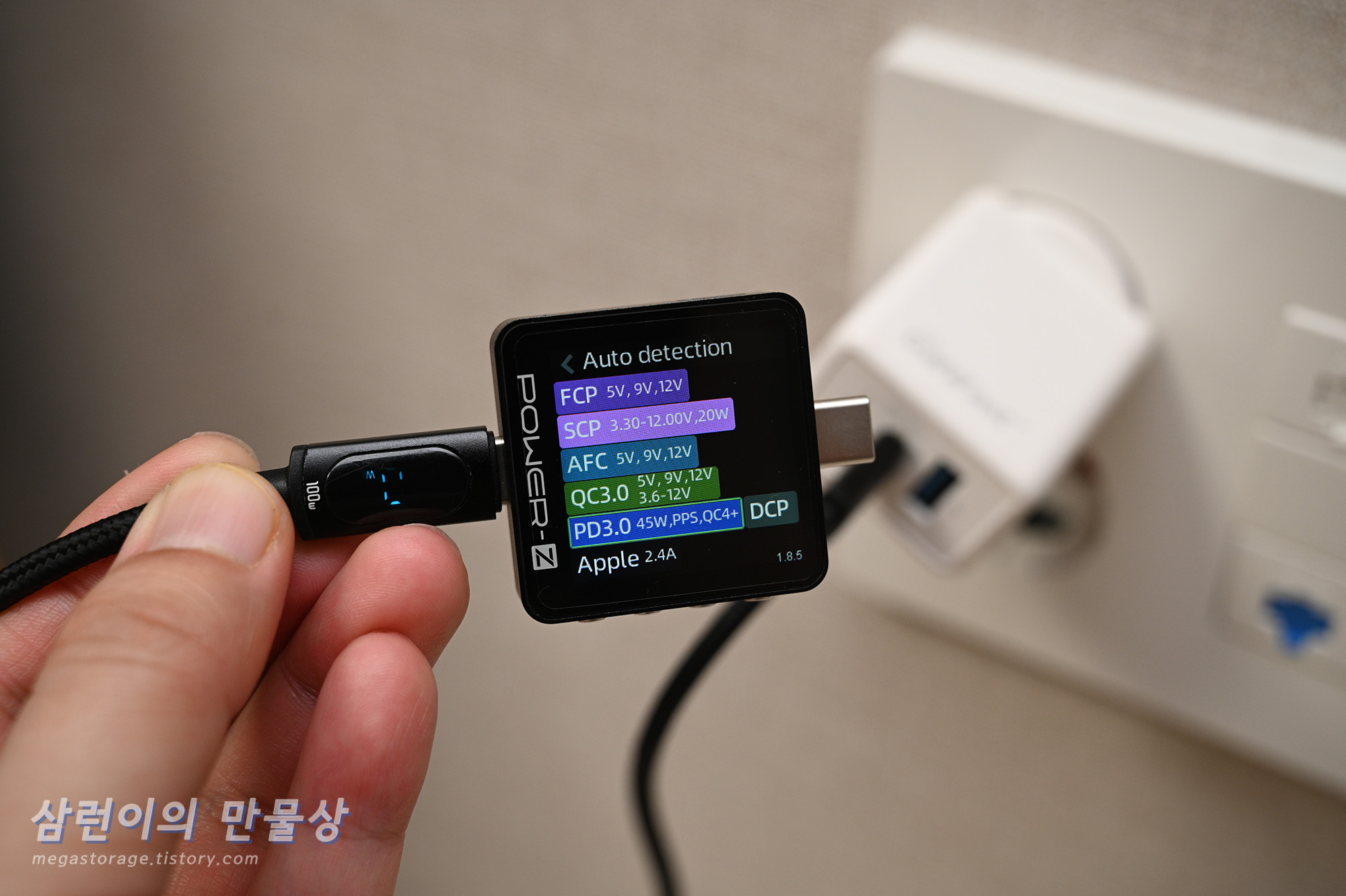 연결된 충전기의 출력 스펙을 스캔하는 기능도 있습니다. 화훼이 1세대 고속충전(FCP), 2세대 고속충전(SCP), 삼성 Adaptive Fast Charging(AFC), 퀄컴 퀵 차지(QC 3.0), PD3.0 및 애플 기기를 포함한 충전 프로토콜의 최대 스펙을 표시해줍니다.
