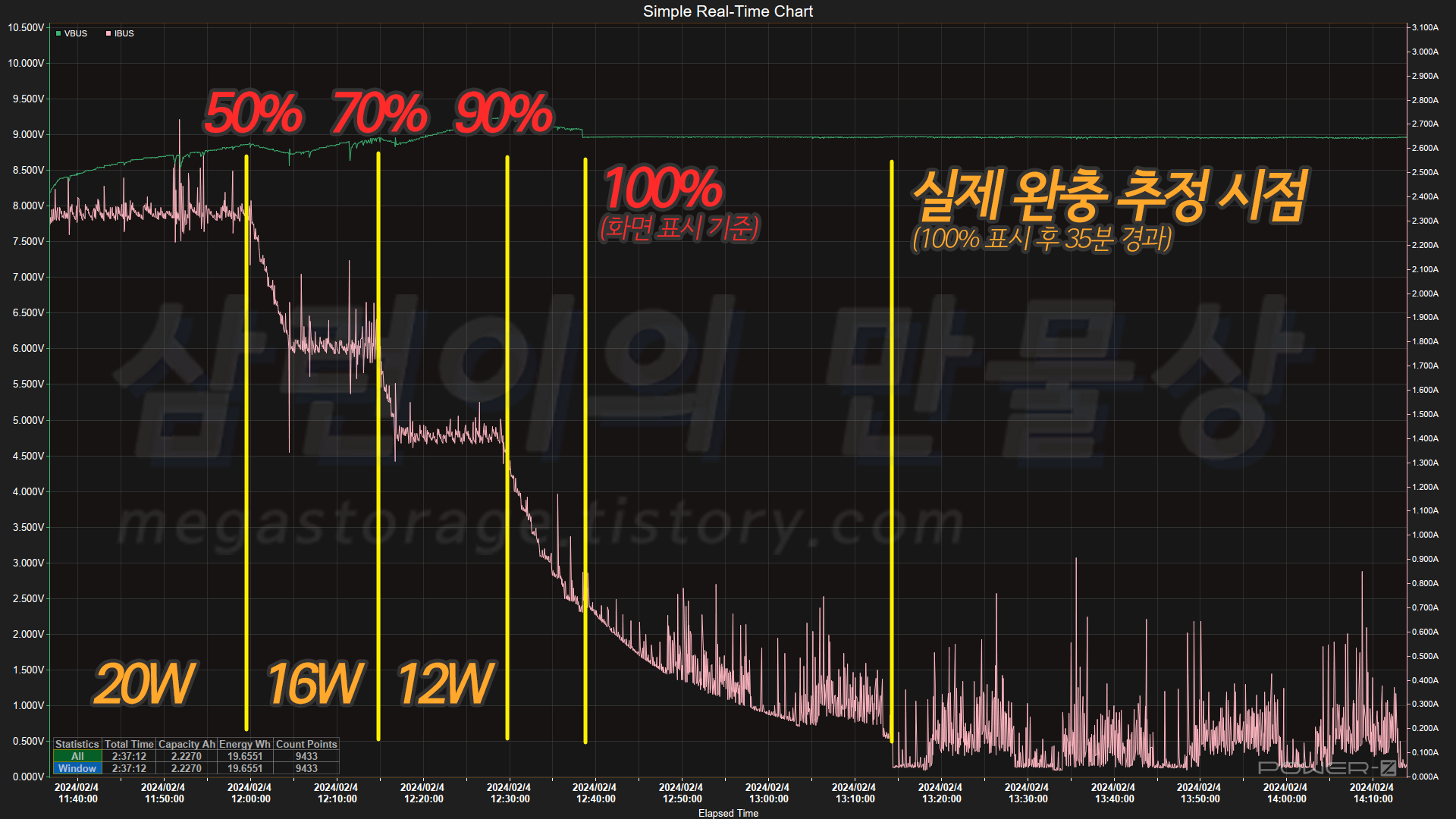 위 이미지는 갤럭시 S24 사용기에 추가하기 위해 만들었습니다. ChargerLab의 POWER-Z KM003C가 없었더라면 위 이미지와 같은 깔끔한 측정 결과물을 얻을 수 없었겠죠. 상당히 편리하고 안정적입니다.