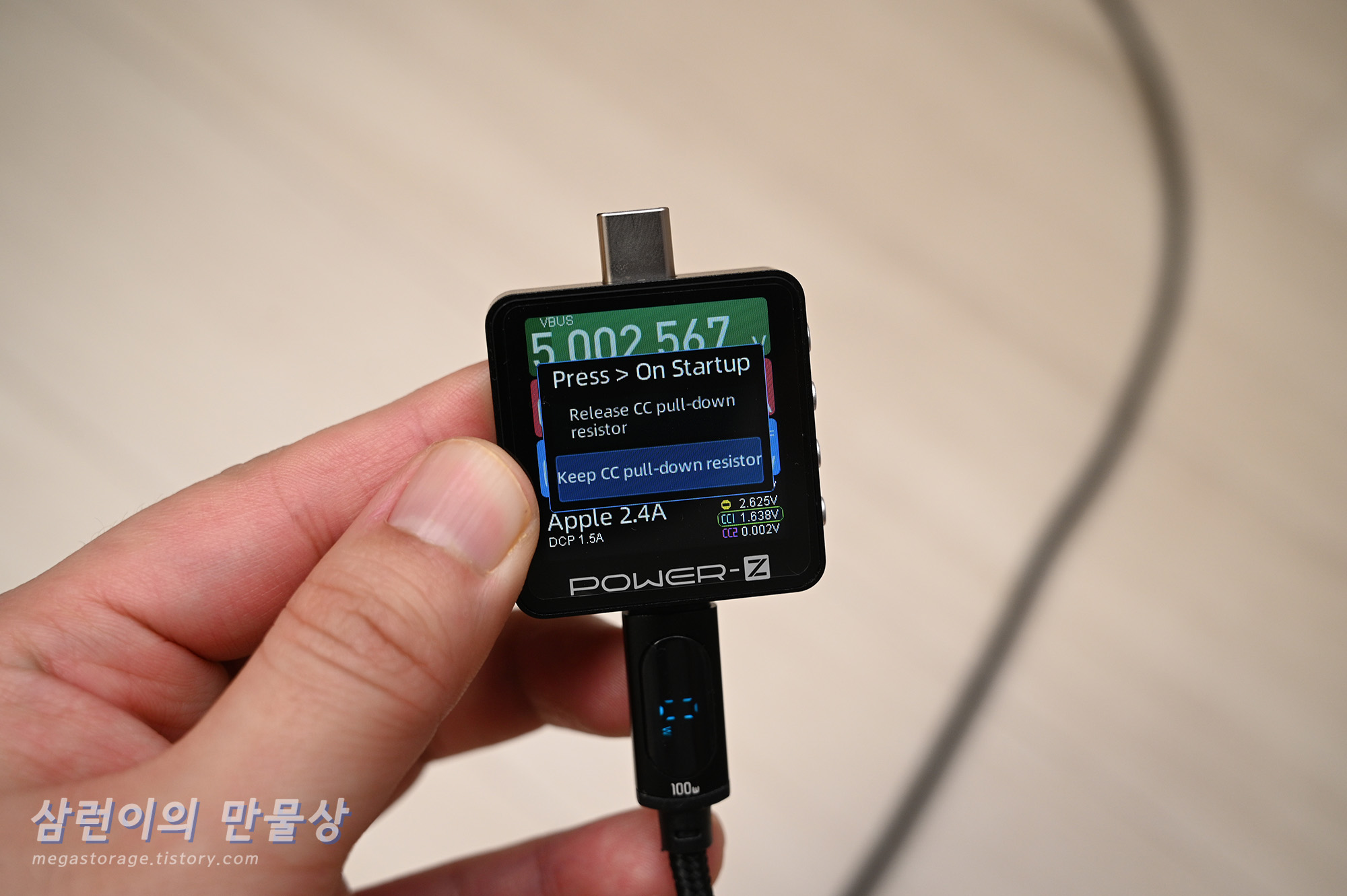 전원을 켜면, CC 라인의 풀 다운을 유지할지 해제할지 선택할 수 있습니다.