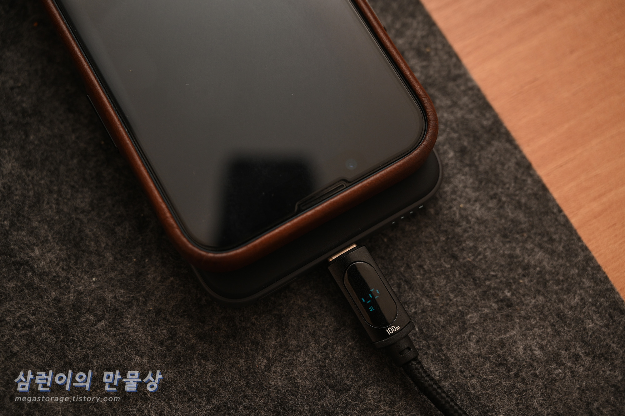 USB-C to USB-C 케이블은 두껍고 튼튼합니다.