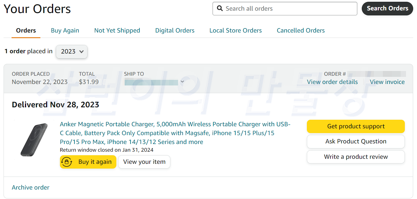 2023년 11월 22일에 아마존에서 Anker 621 MagGo A1610를 31.99달러에 구매했습니다. ( https://amzn.to/49mDXds) 지금은 약 40달러로 가격이 올라있는 상태입니다.