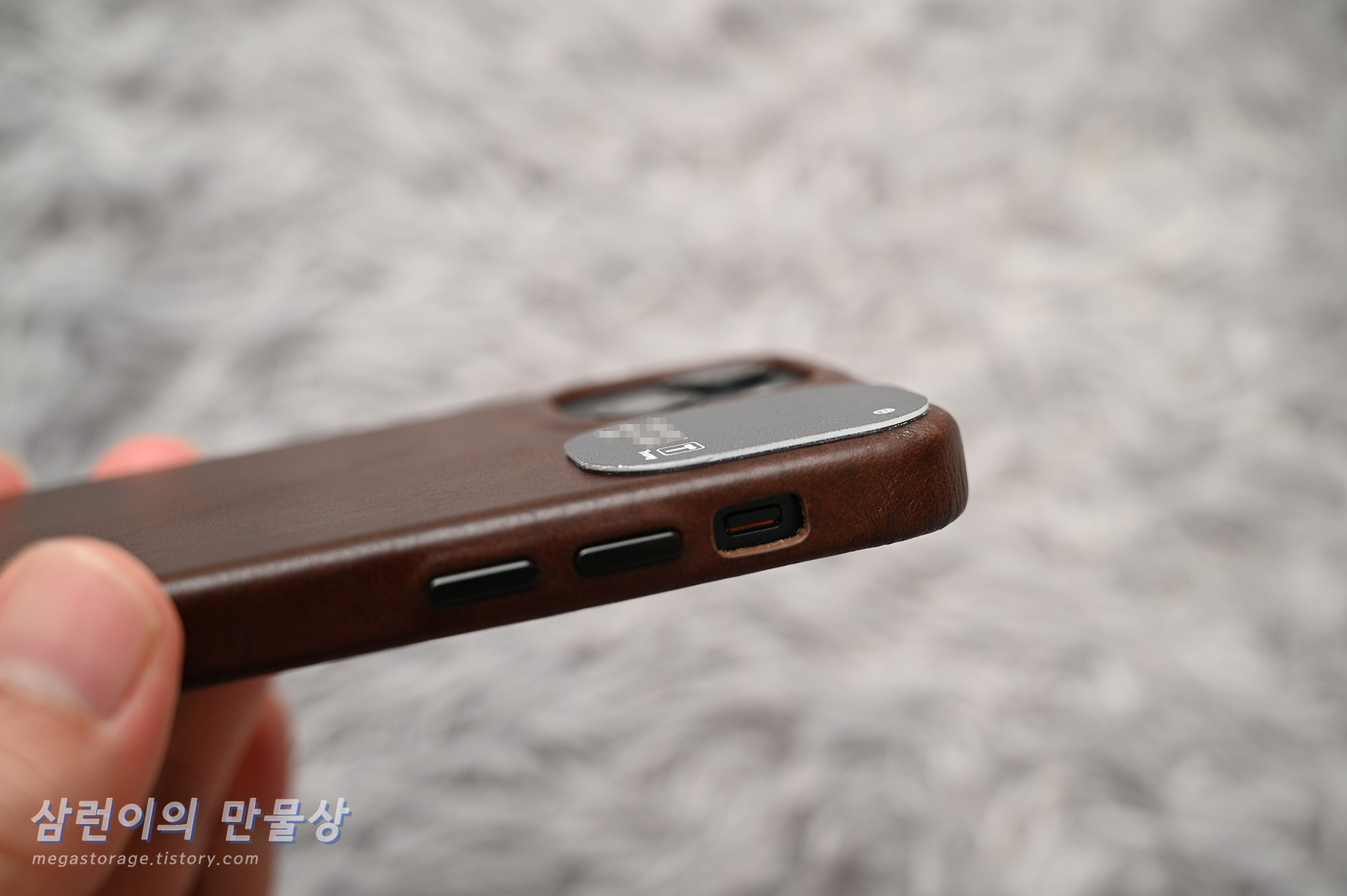 지금 사용 중인 아이폰 13 미니용 가죽 케이스의 카메라 섬 옆에 위치해봤습니다. 기존 가죽 케이스는 카메라 섬 옆이 평평한데, 위 케이스는 카메라 섬 옆이 경사가 있습니다. 기존 티머니 스티커카드를 부착했다면, 섬 옆의 경사 부분으로 인해 들뜸 현상이 있었을 것입니다. 티머니 스티커카드 소프트는 정말 아름답게 딱 맞춰졌습니다.