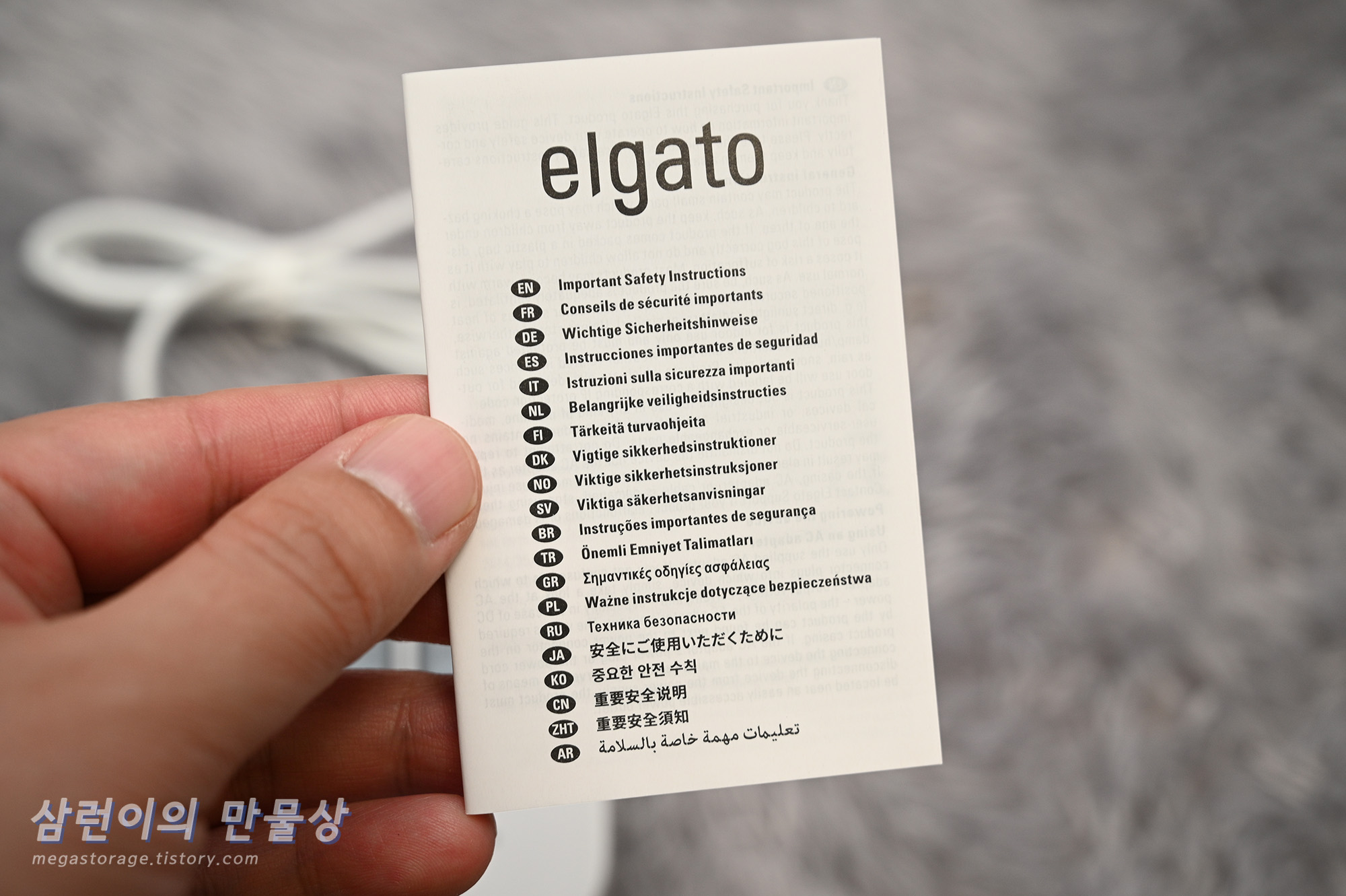 둥글둥글한 하얀색이라서 매우 잘 어울립니다. 전원만 넣으면 하단 스크린에 elgato 문구가 출력됩니다.
