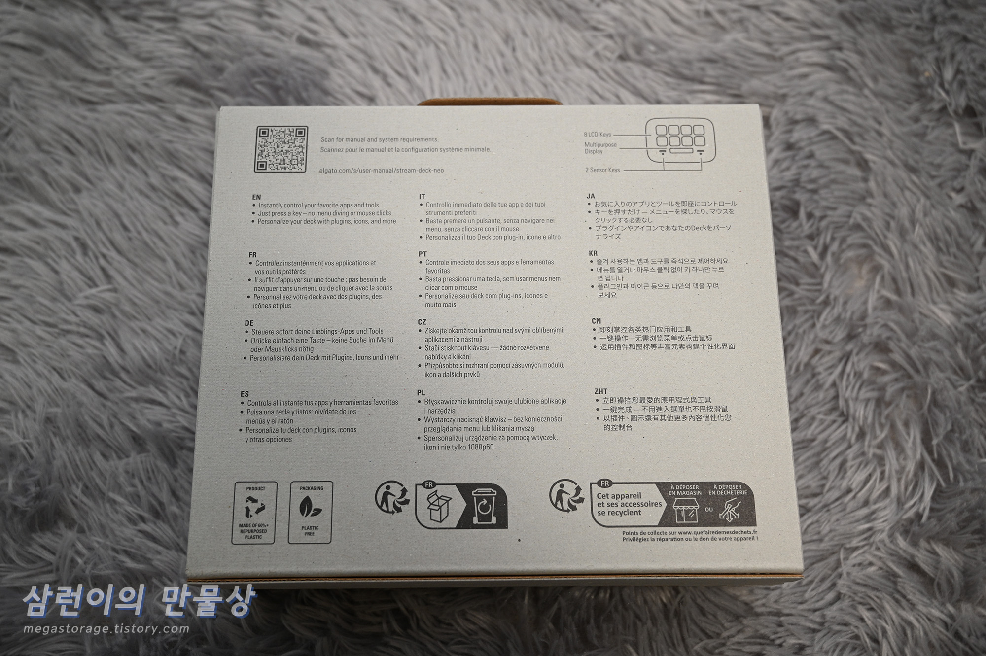 그리고 무려 3년이 지난 2024년 5월에 엘가토(Elgato)의 스트림 덱 네오(Stream Deck Neo) 제품을 보고 갑자기 뽐뿌가 왔습니다. 버튼이 많아졌고, 디자인이 제 취향이었으며, 시간 표시를 위한 전용 공간이 추가되었습니다. 이 정도면 유용하게 쓸 수 있겠는데..? 라는 생각으로 구매를 진행했습니다.