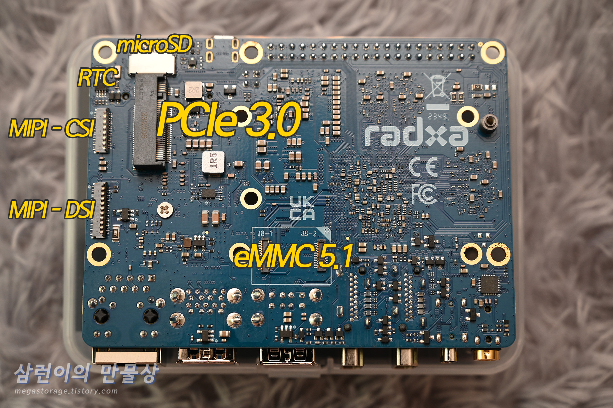 마지막으로, 중앙 하단에는 eMMC 5.1 포트가 있습니다. ROCK 시리즈 전용 eMMC 모듈을 장착하면 사용할 수 있습니다.