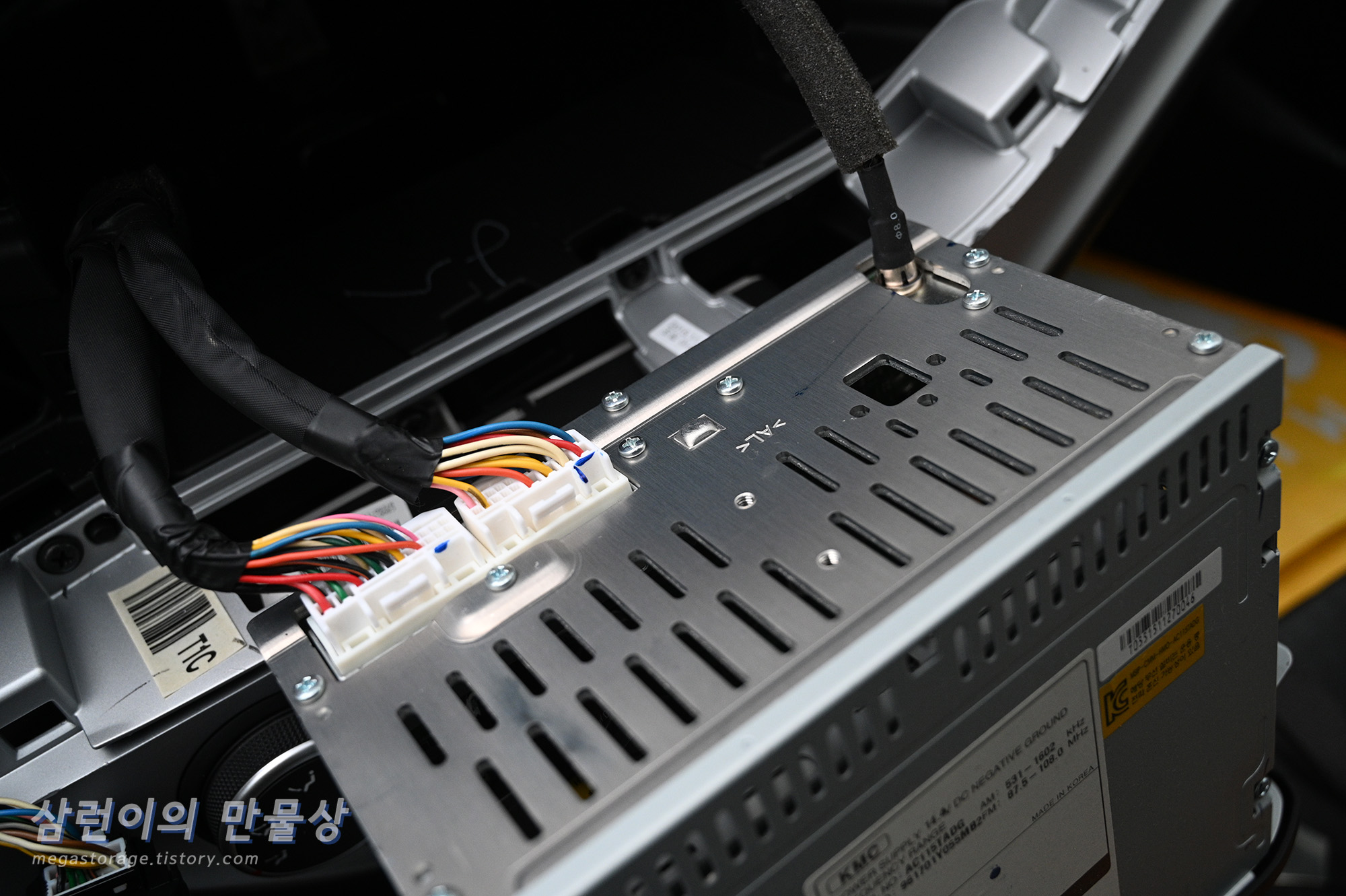 후면에 케이블 3개가 연결되어 있습니다. 모두 제거합니다. 좌측부터 메인케이블 2개와 라디오 안테나 케이블입니다.