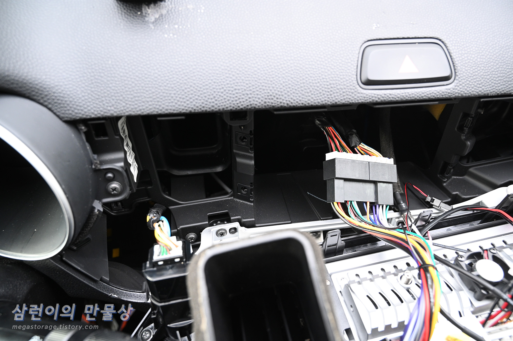 USB 케이블은 안쪽으로 뺀 후 콘솔 박스에 넣어두었습니다. 필요 시 사용하면 됩니다. 이렇게 케이블 연결은 끝입니다. 저는 후방카메라를 설치 하지 않았고, 앞으로 사용할 계획이 없어서 진행하지 않았습니다.