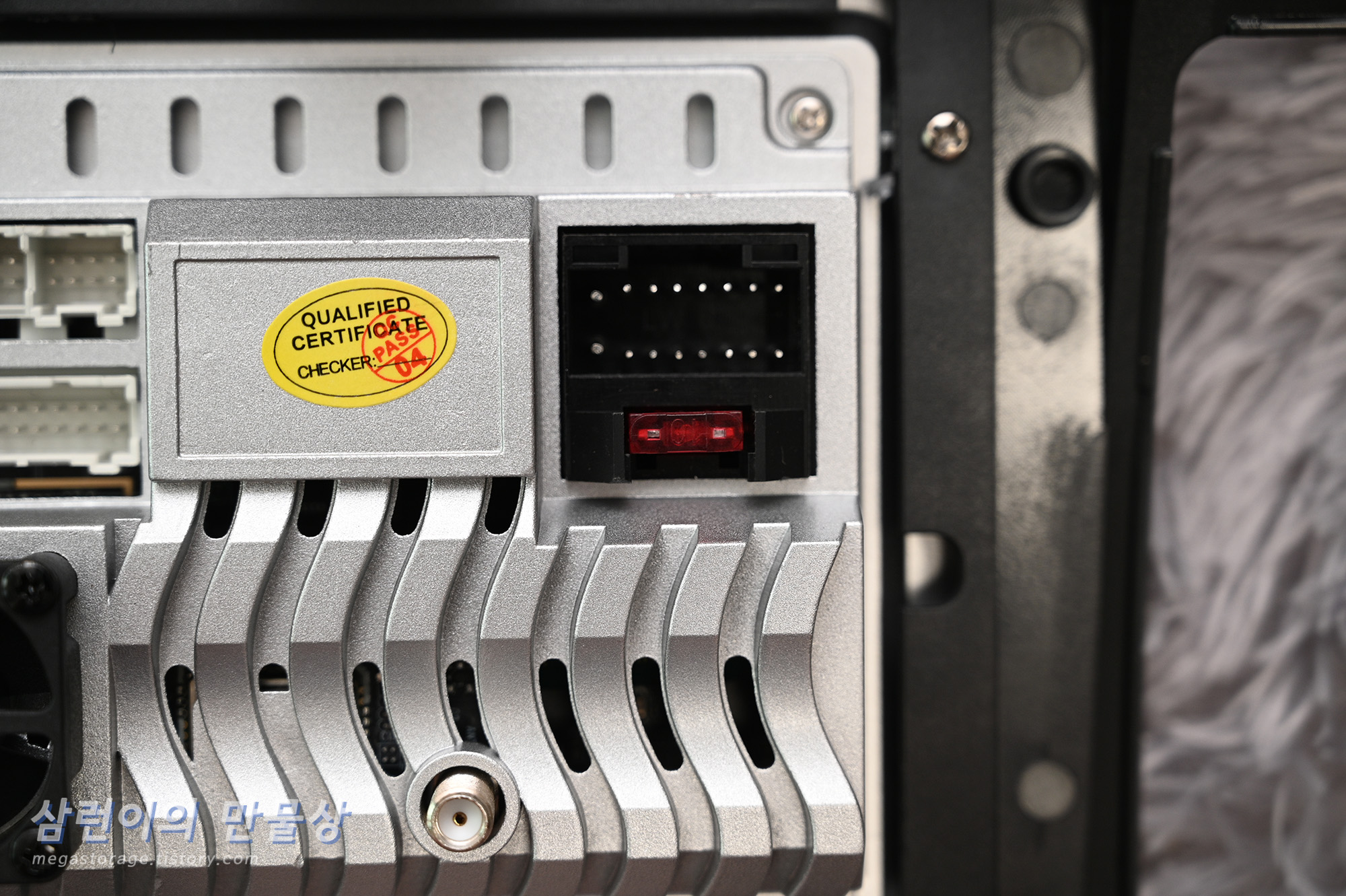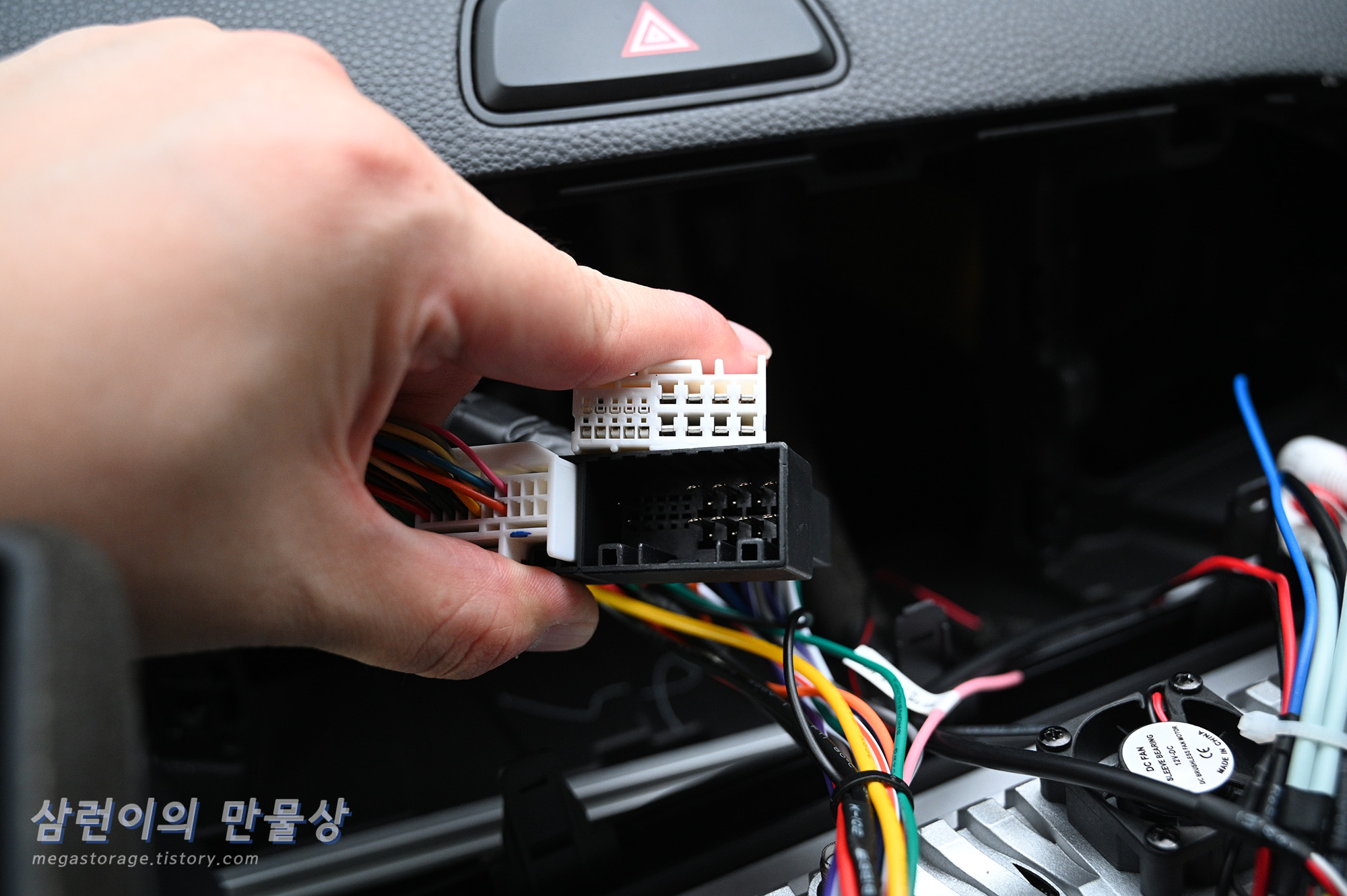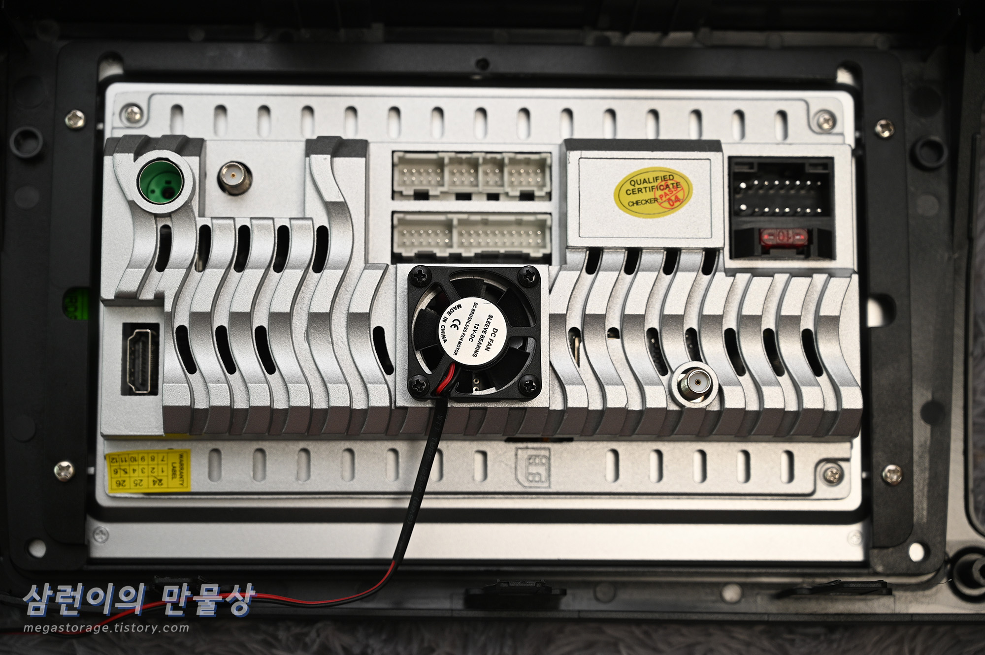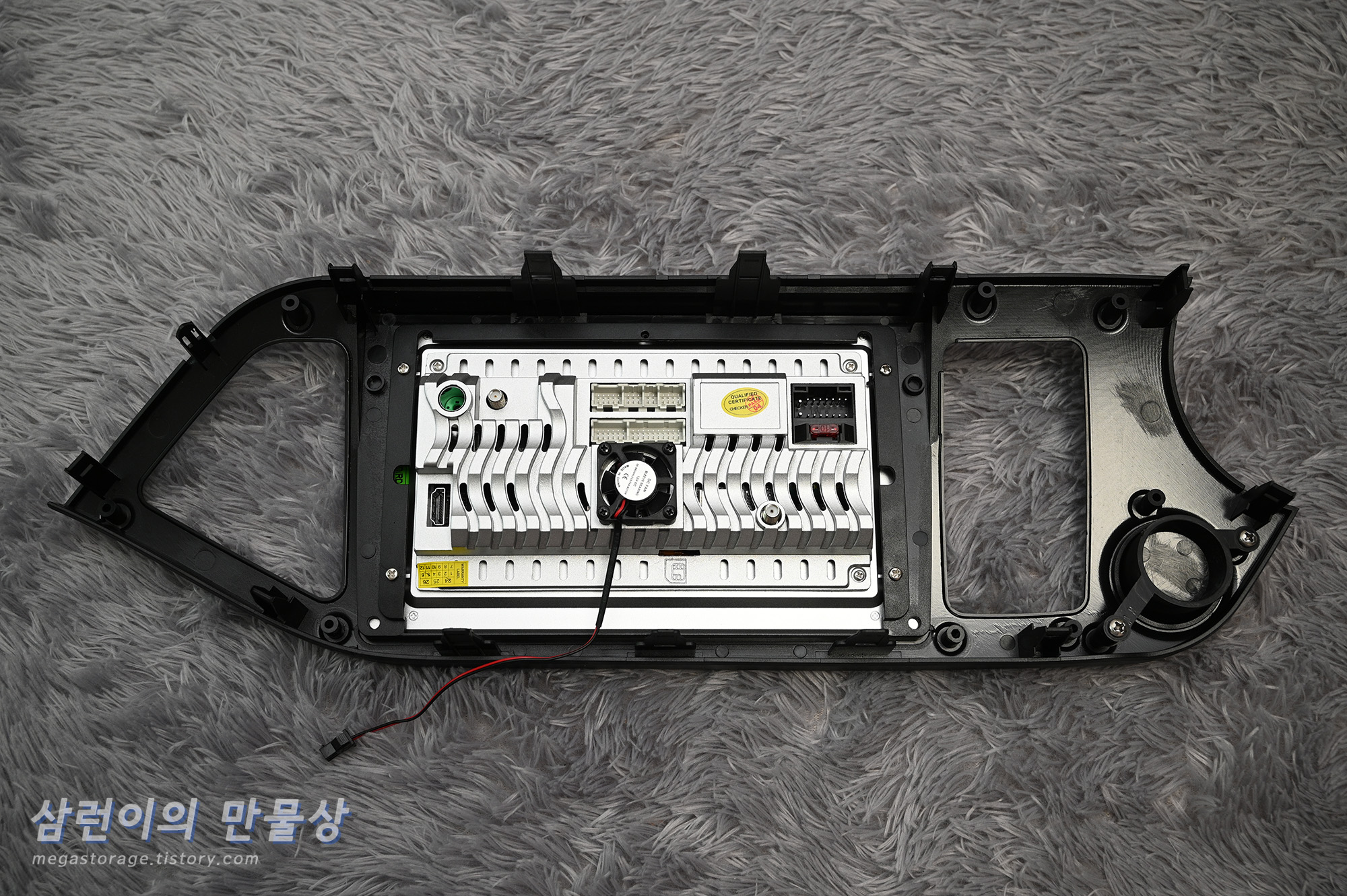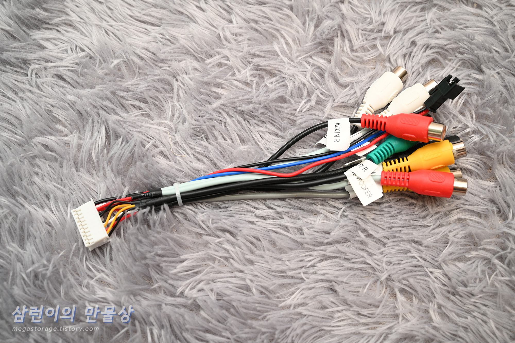 차량의 다양한 스피커와 연결하거나 안드로이드 올인원 디스플레이 후면에 부착된 팬의 전원과 연결하는 케이블이 있습니다.