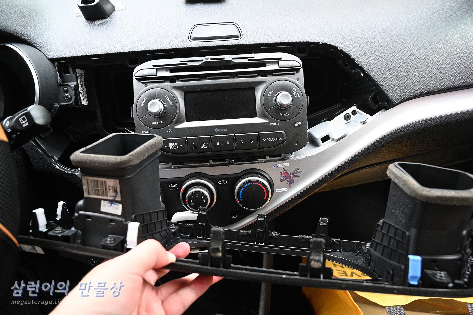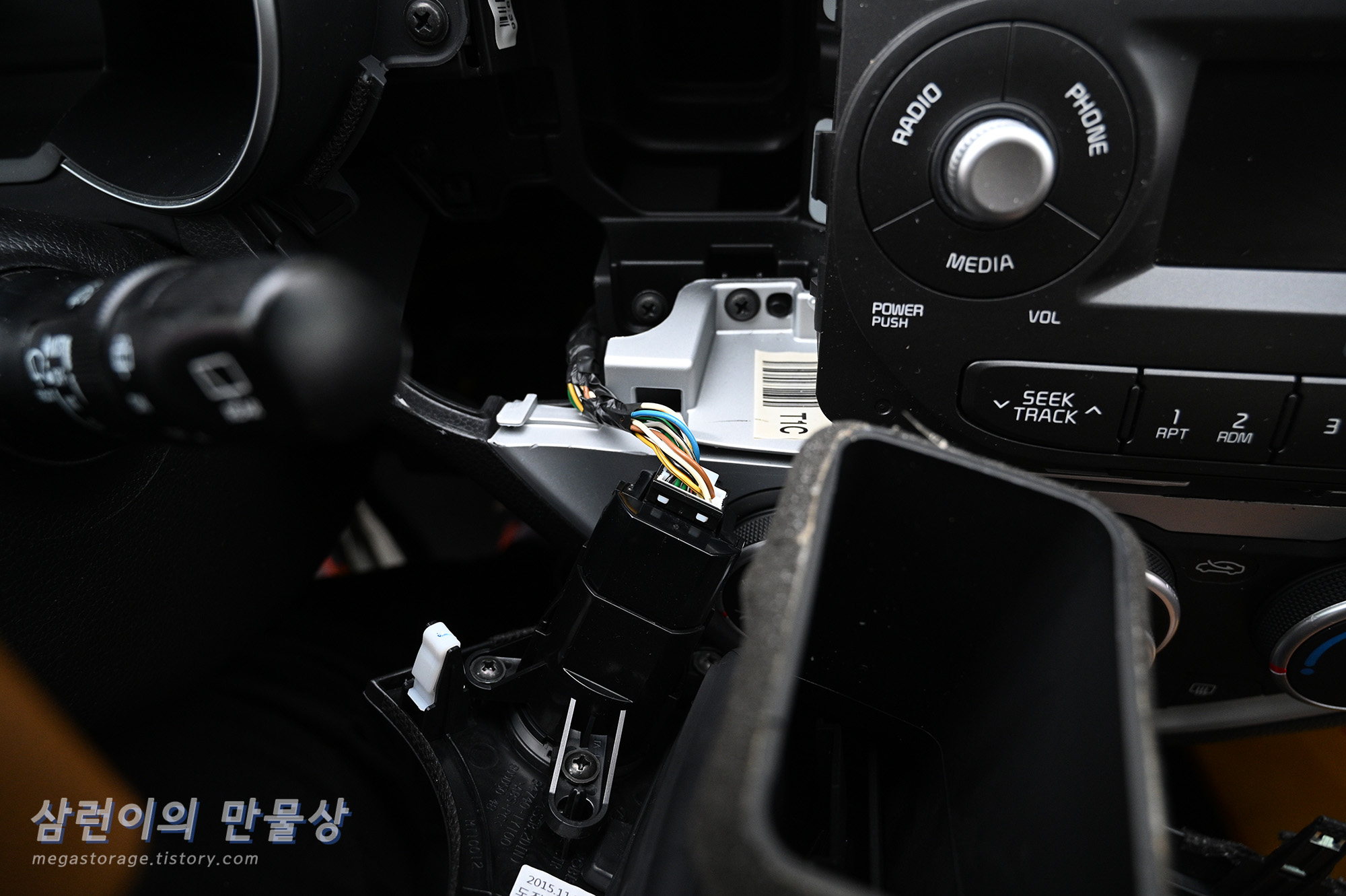 카 오디오까지 제거한 모습입니다. 횡 한 모습입니다. (위 사진은 시동 버튼을 잠시 달아둔 모습입니다.)