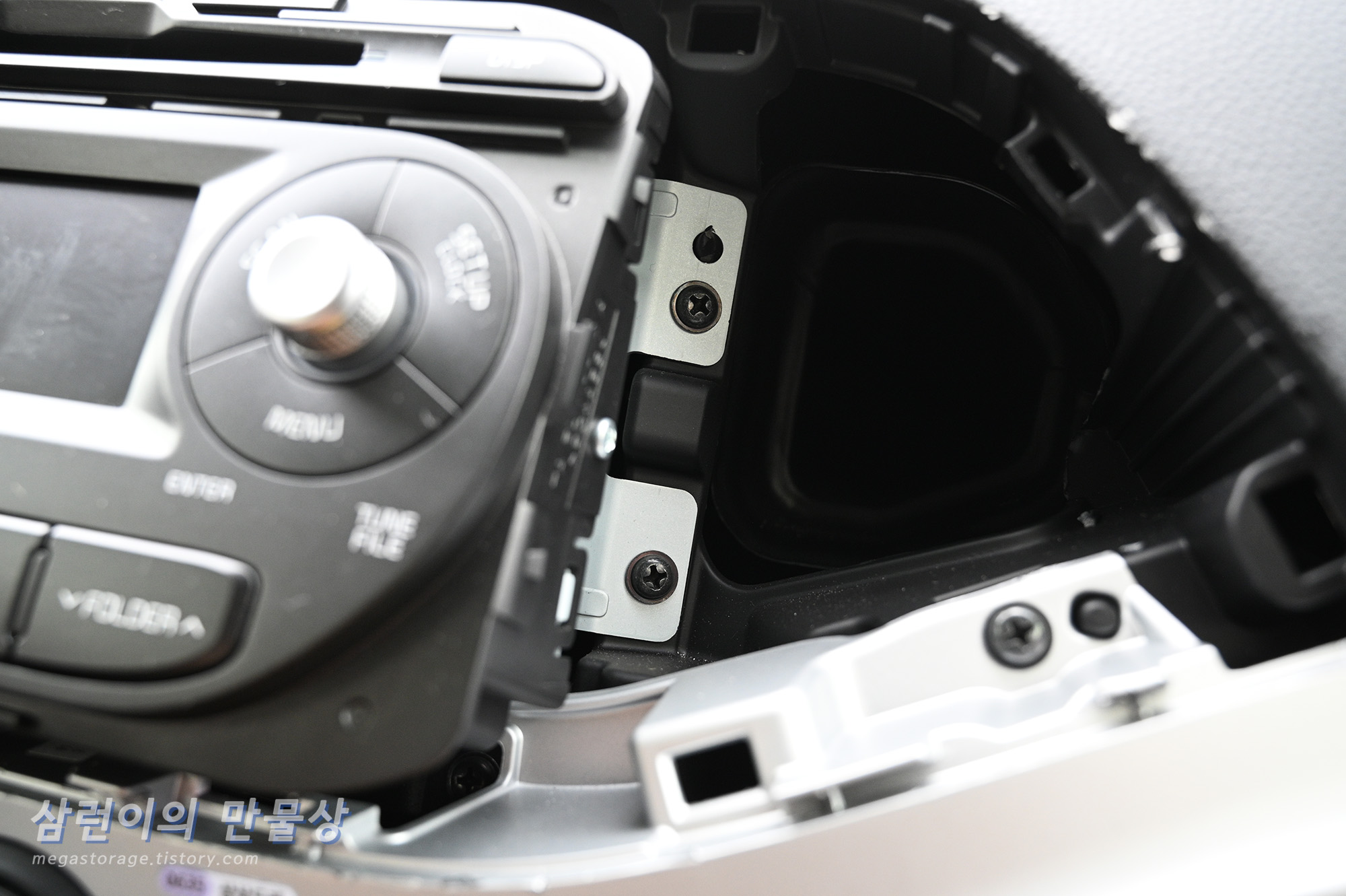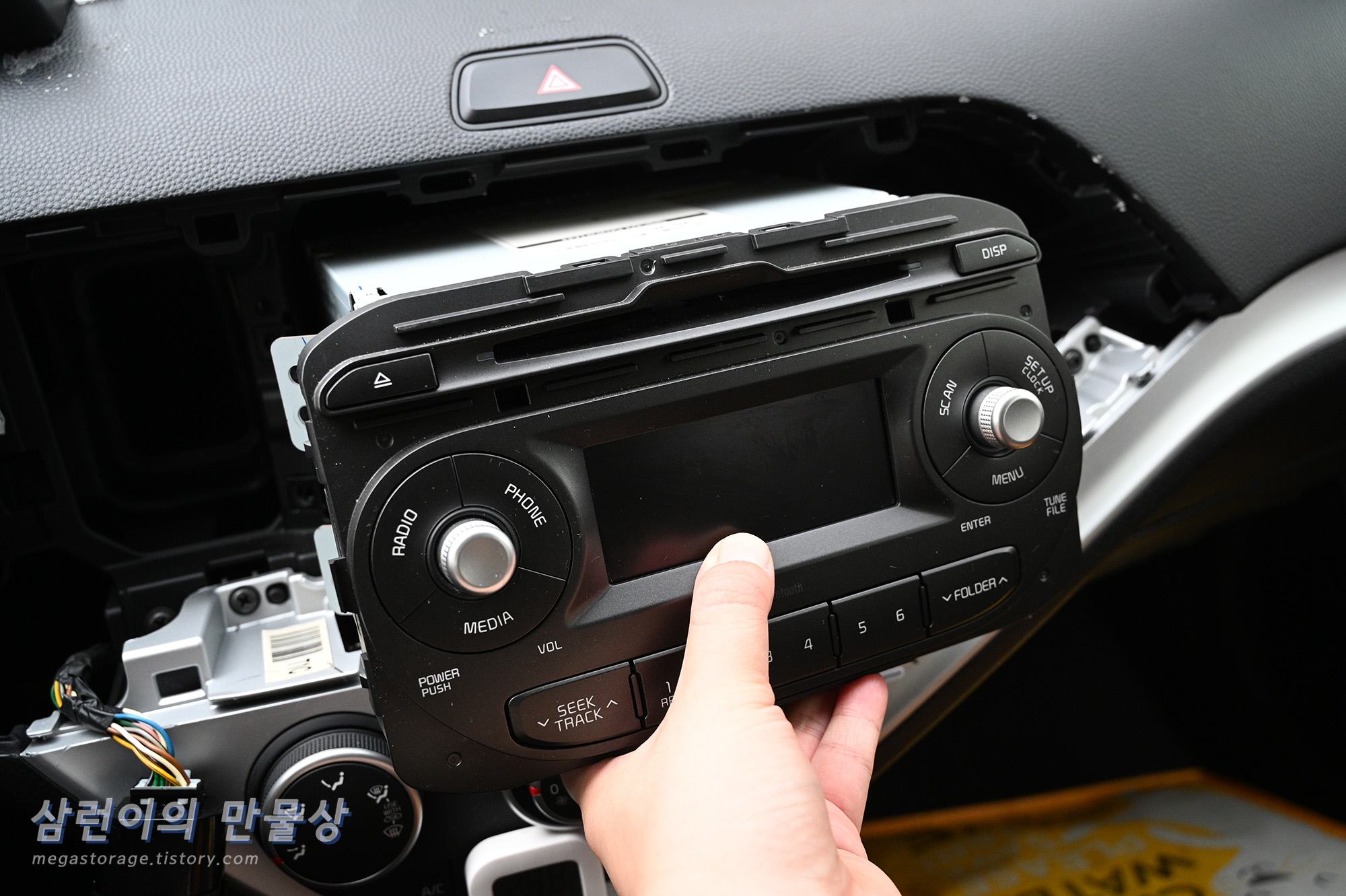 나사를 푼 이후에 카 오디오를 잡고 꺼내면 됩니다.
